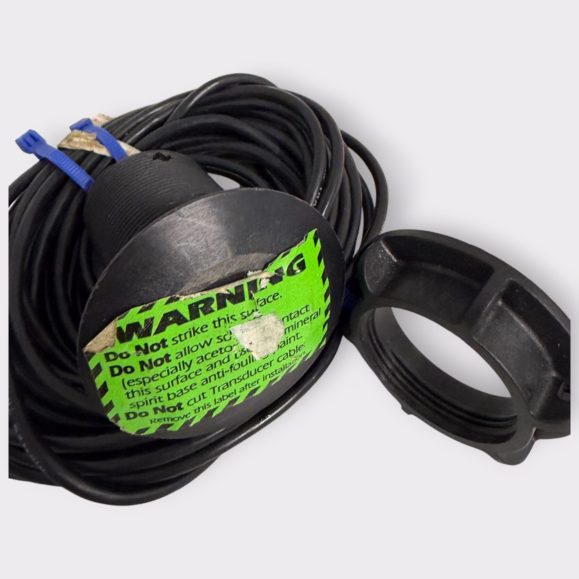 This is a never installed P5 “Shorty” depth transducer with the spade connectors. This is a plastic thru-hull transducer. This is new-open-box and comes as shown, ready to install with transducer, hull nut, and connectors for the ST60, ST40, ST30, i50, ST70/ST290 depth pod, and ITC-5