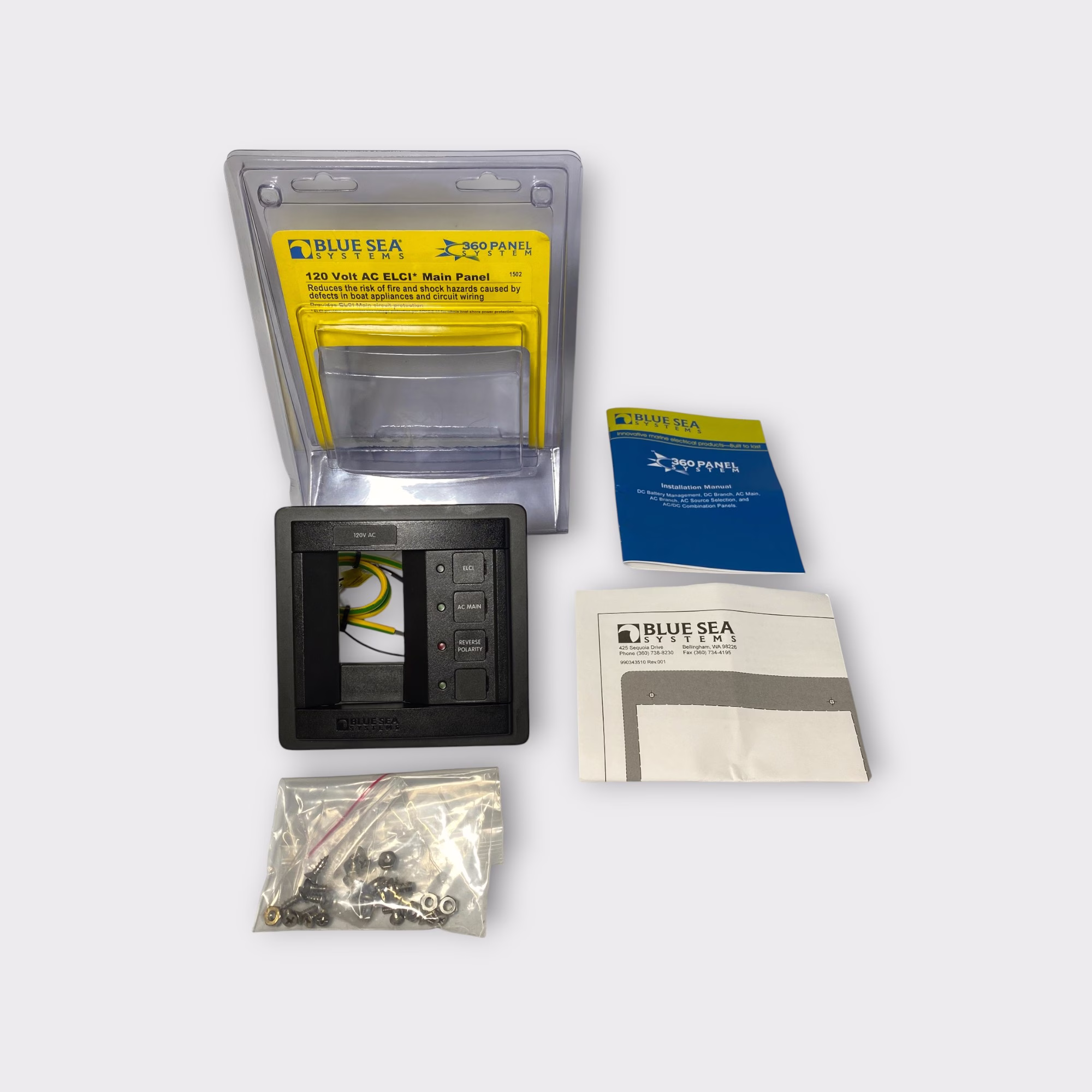 - 1x – Blue Sea 1502 ELCI Main Circuit Breaker Panel