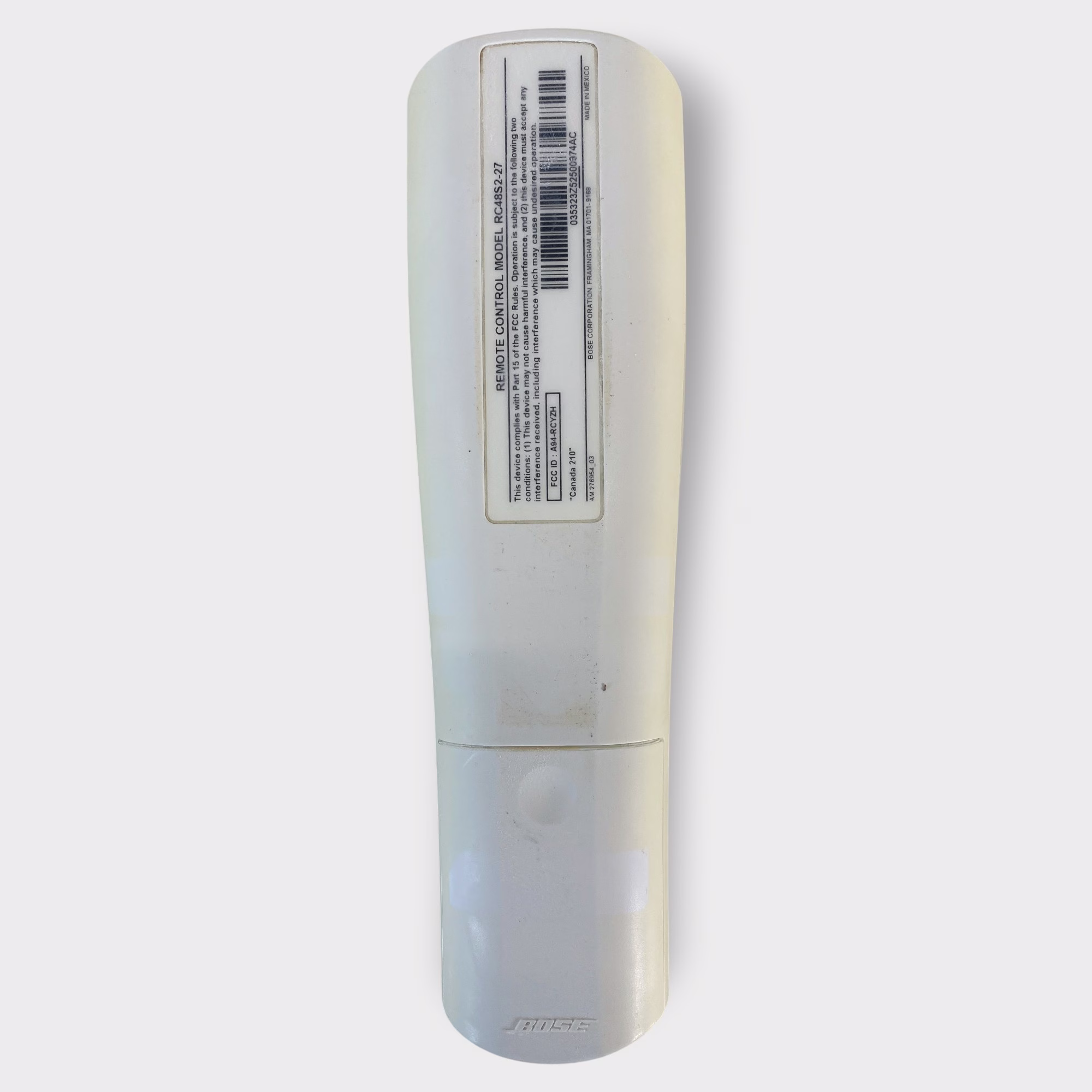 Additional Notes: Bose RC48S2-27 Personal Music Center II Remote has yellowed across top surface