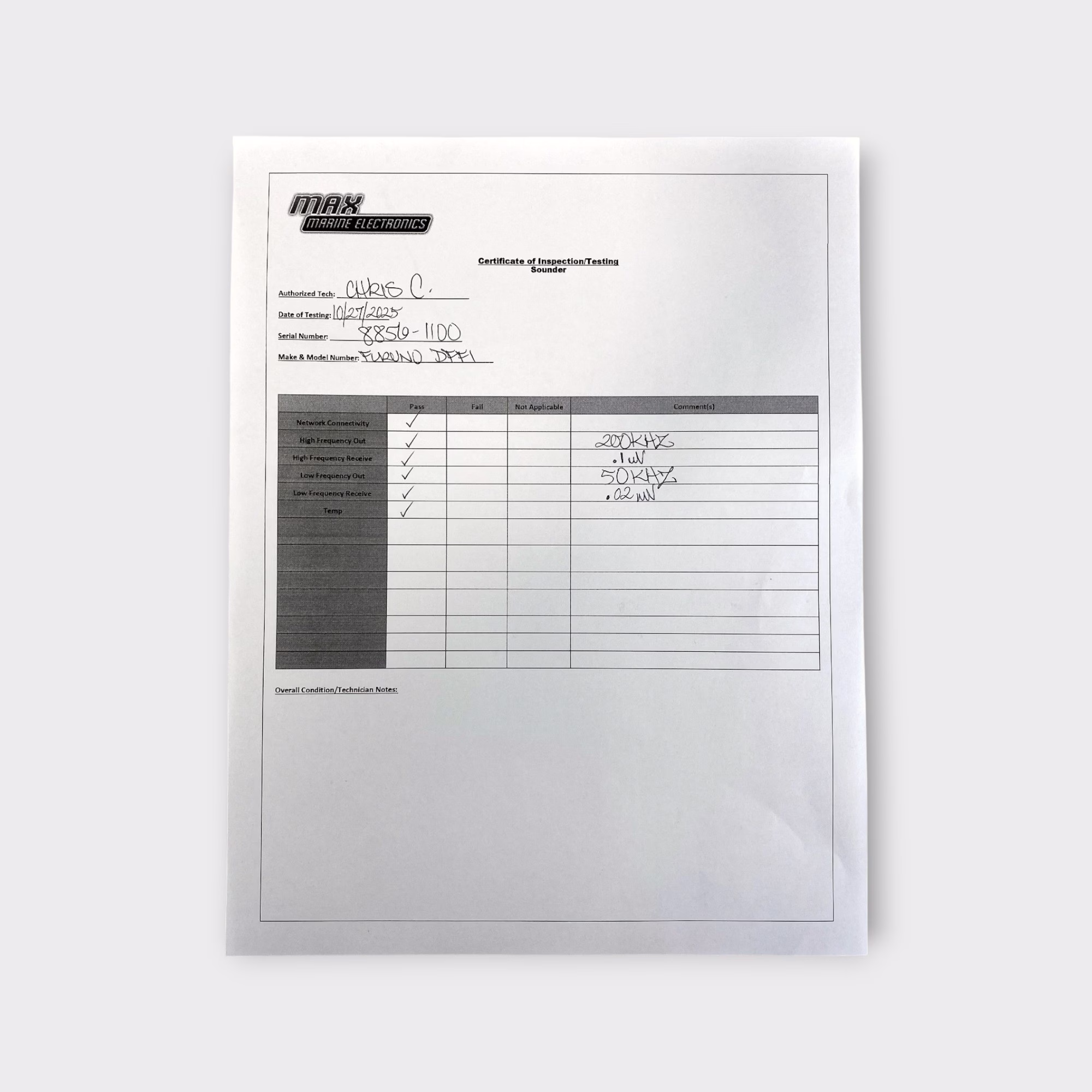 This sounder module was bench-tested on both its 50 kHz and 200 kHz frequencies and verified as fully functional. We also updated this unit to the latest software revision to optimize performance.
