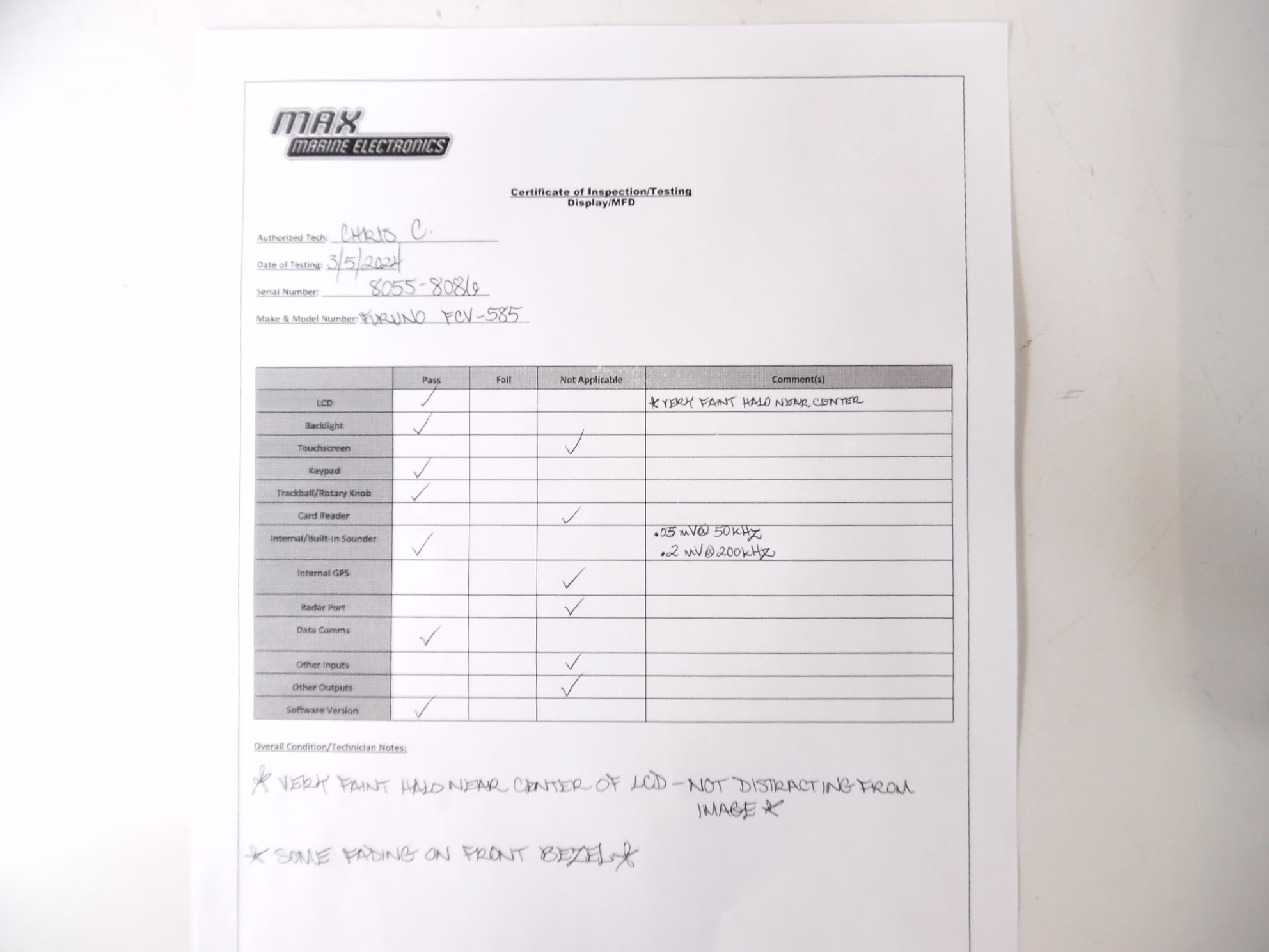 This unit has been tested on both its 50 and 200-kHz frequencies, as well as the NMEA 0183 to verify full operation.