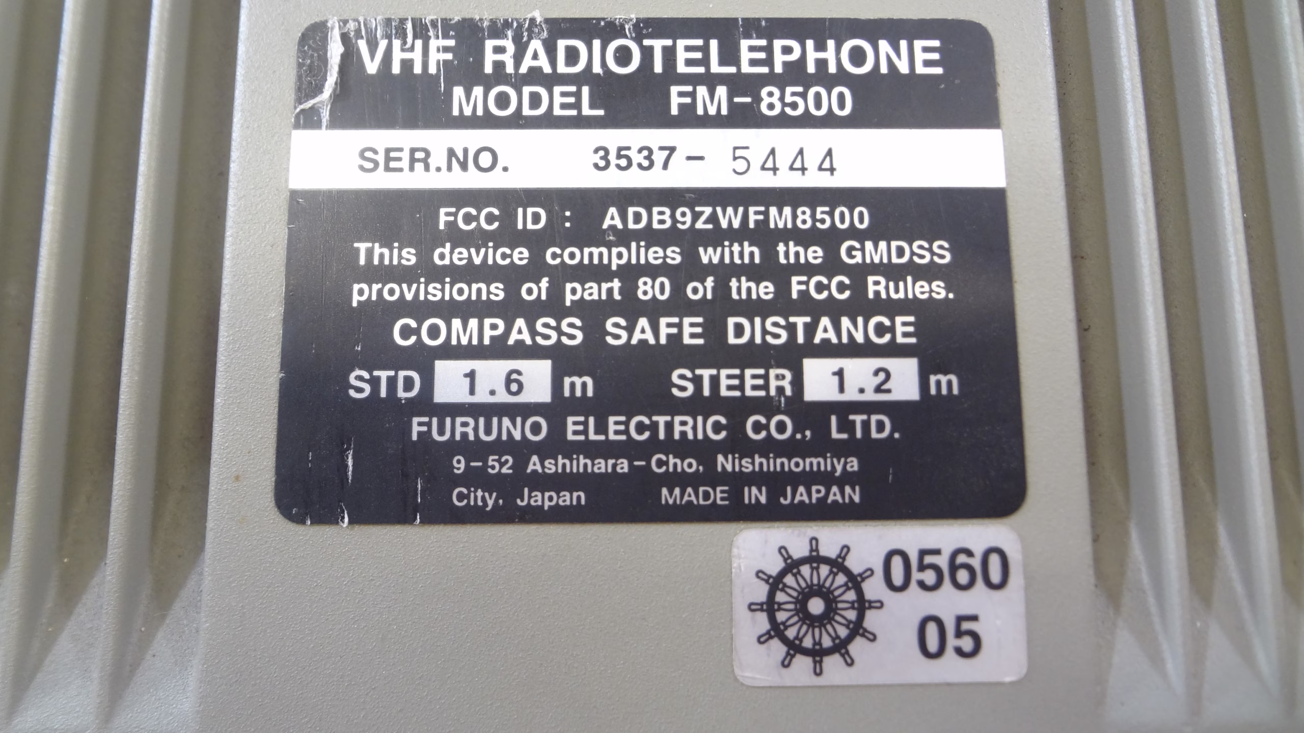 This listing is for a Furuno FM-8500 Marine VHF Radio Telephone Transceiver Unit No Microphone -Tested