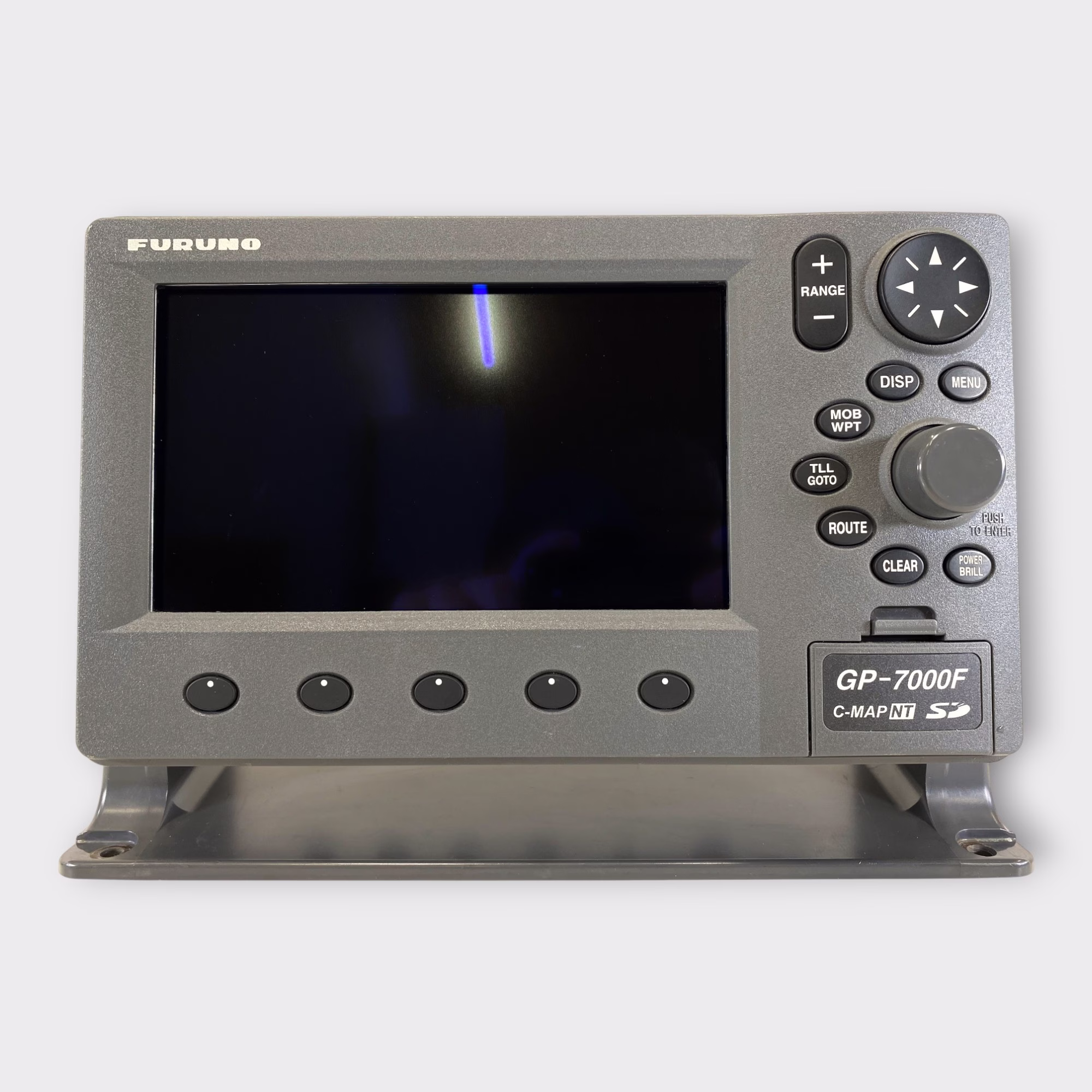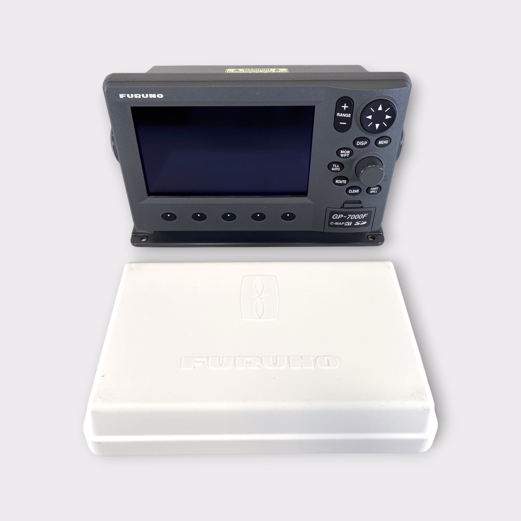 *This is a standalone chart-plotter and fish-finder. It requires certain peripherals for operation- a chart card to provide chart detail, a GPS antenna for position, and a transducer for the sounder function, NONE OF WHICH ARE INCLUDED. THIS LISTING IS FOR THE GP-7000F/NT DISPLAY, SUN COVER, BRACKET, AND KNOBS ONLY- NOTHING ELSE IS INCLUDED.*