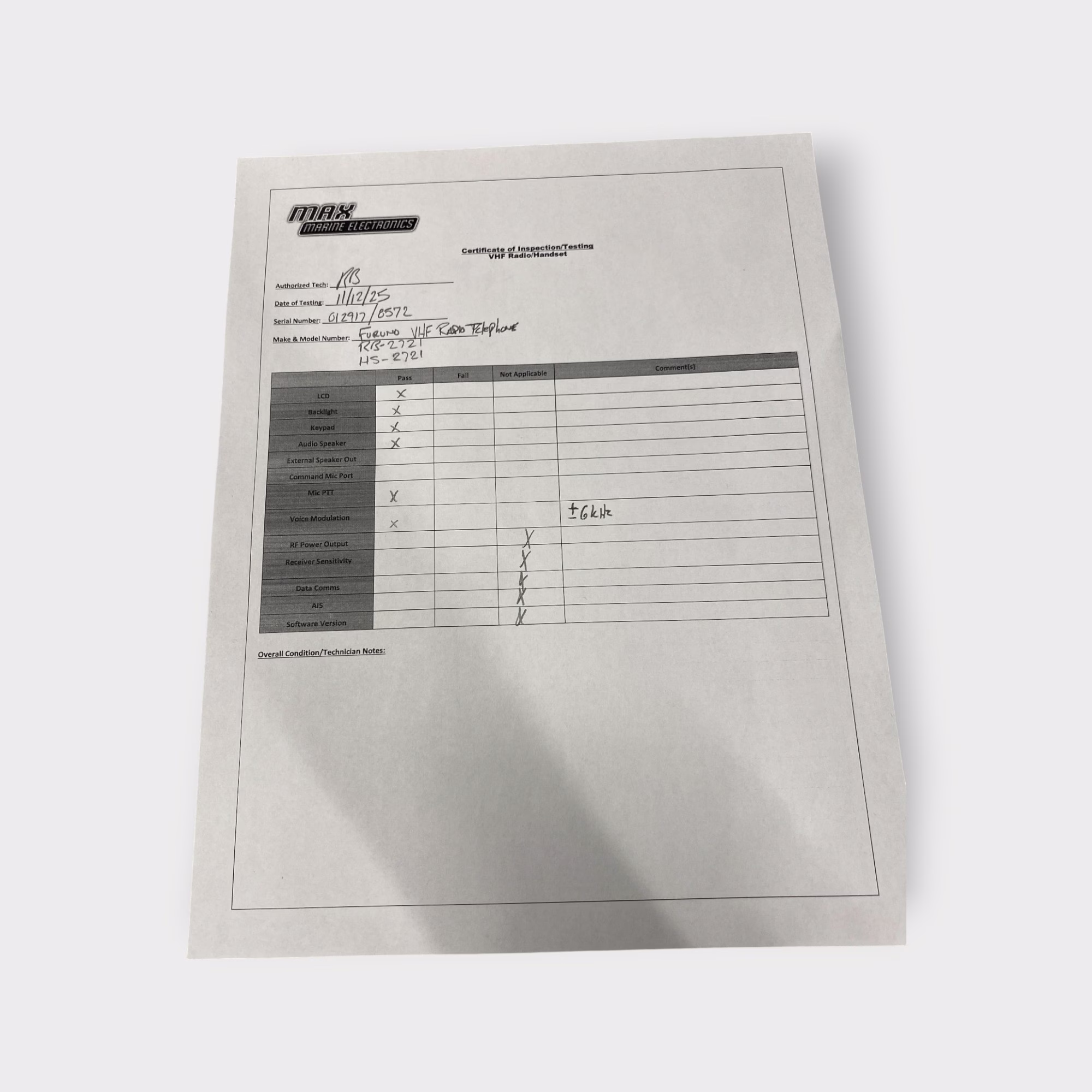 - Furuno HS-2721 Handset S/N: 012917 RB-2721 Cradle S/N: 8572