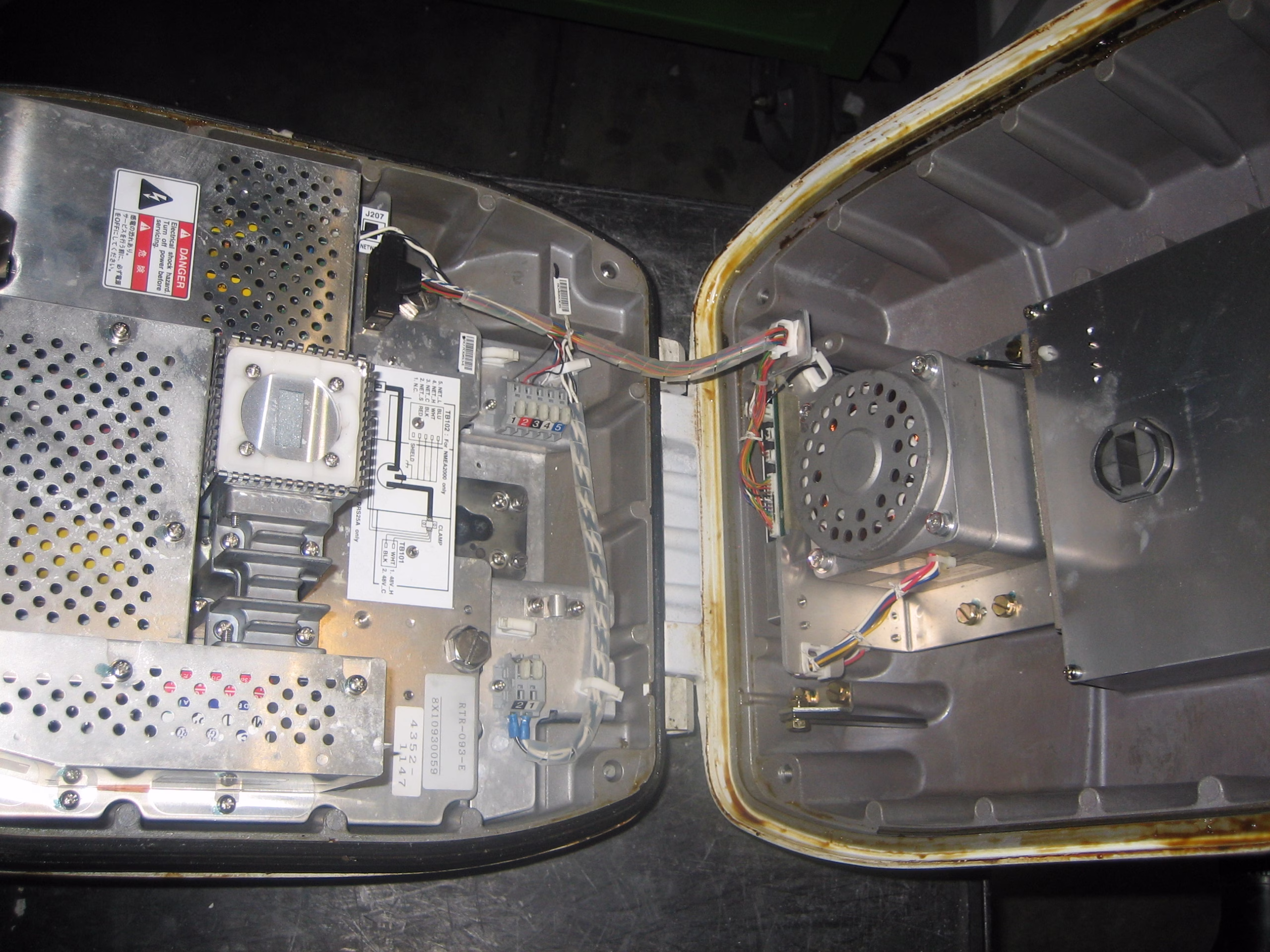 - MFD12 – with suncover, power, network, and NMEA0183 cables. Bezel has small cracks in a few locations but still snaps into place.