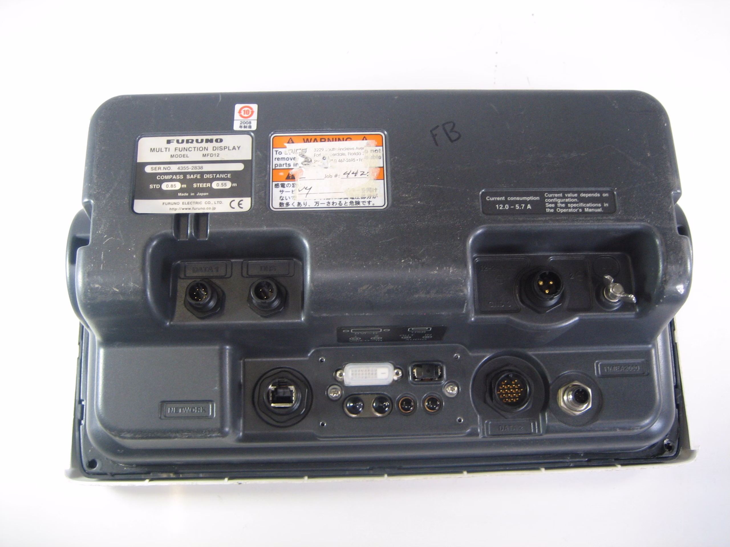 • Furuno MFD12 – Bezel has minor cracks. LCD glass has water spots.
