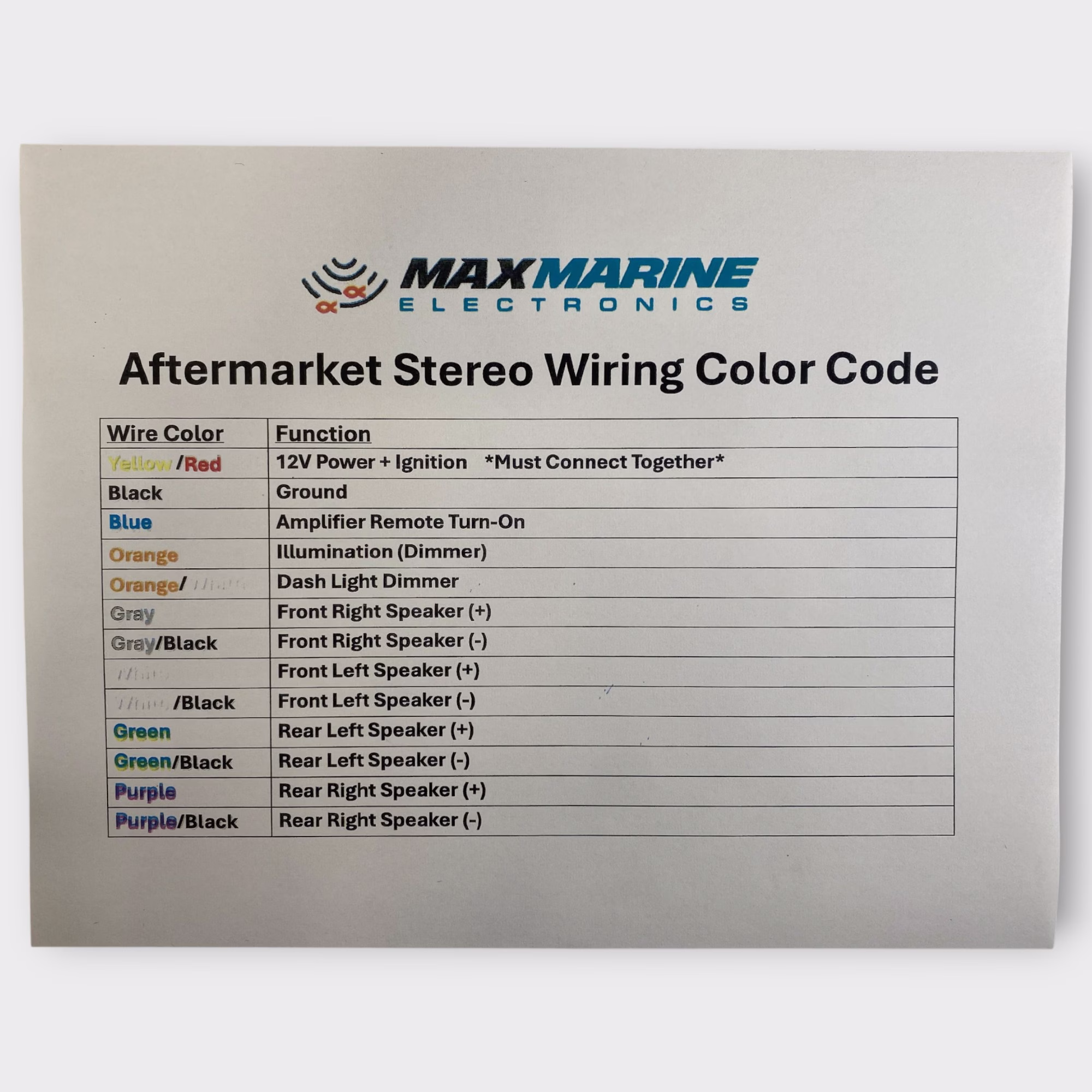 • Stereo Wiring Color Code Guide