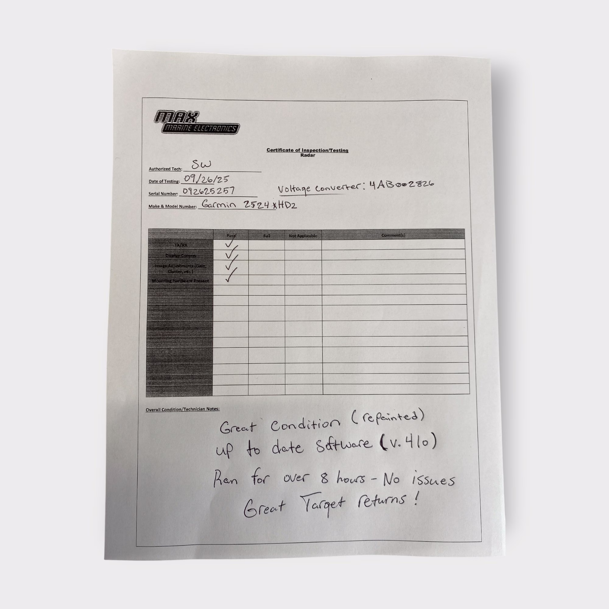 This means that after the Max Marine Electronics’ 90-day warranty (the same warranty Garmin gives to factory repaired products), there is no resource for these radars to be serviced. We certainly hope and expect the radars will last well beyond the warranty period, and we have put a lot of time into trying to make the best of the situation with these radars. We believe that if buying a used Garmin radar, buying one of ours will give buyers the best shot at a reasonable service life