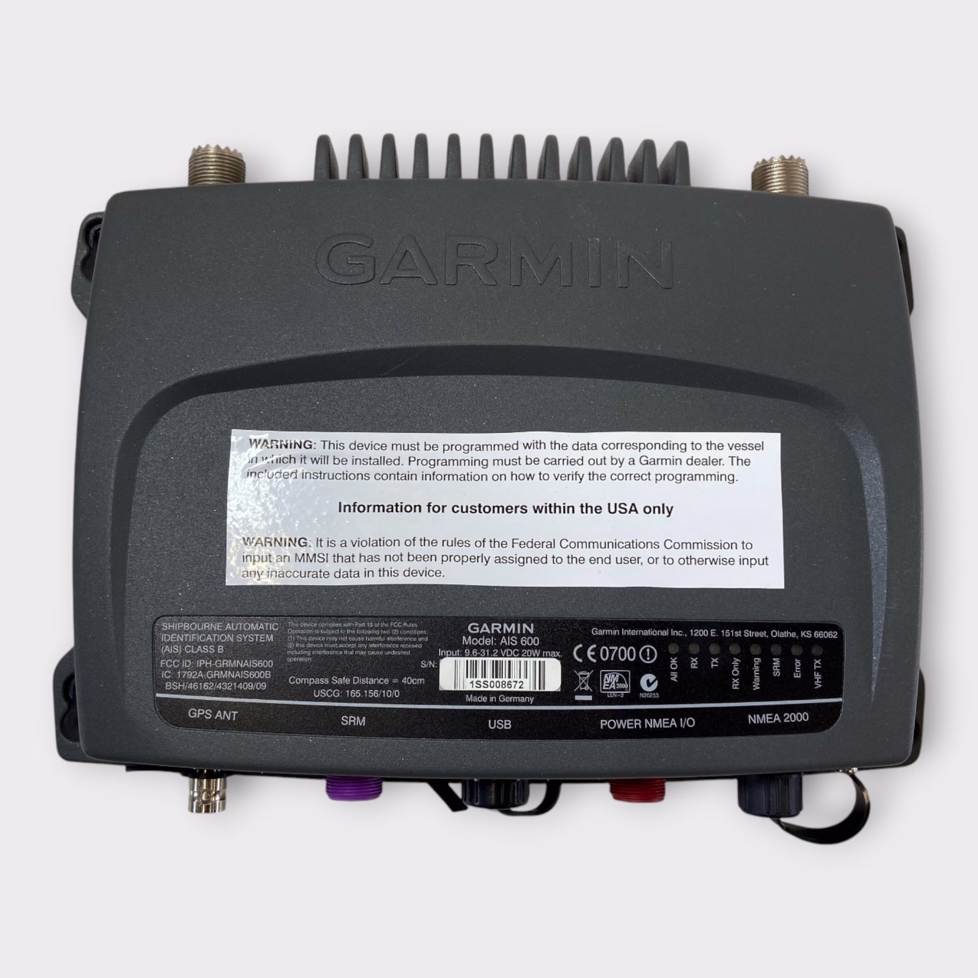 Garmin AIS600 Blackbox Class B Transponder – Clean MMSI – 010-00865-00 – Tested!