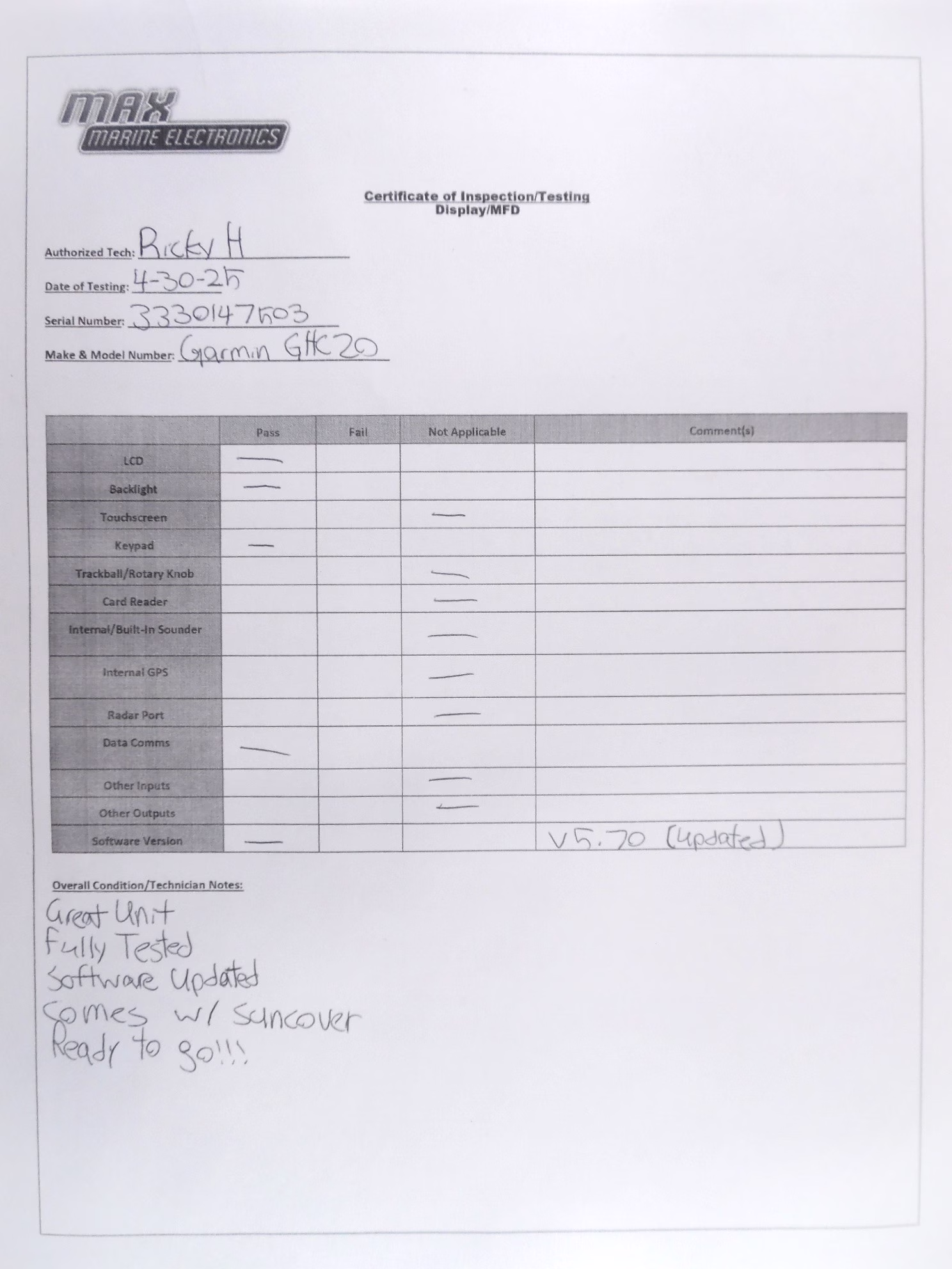 All items sold at Max Marine Electronics come as you see in the pictures provided, with only the parts and accessories stated in the description section named “What’s Included”. IF YOU DO NOT SEE SOMETHING YOU EXPECT TO BE INCLUDED IN THE DESCRIPTION WE PROVIDE, IT WILL NOT BE INCLUDED. Read all descriptions thoroughly. There are times when a display is used only to show the item being sold is functional and working properly. In this case, these displays are not included. If you have any questions feel free to send a message or call Max Marine Electronics Inc, Pompano Beach, Florida. We always want to be transparent with our customers and fully disclose any information regarding the products we sell.