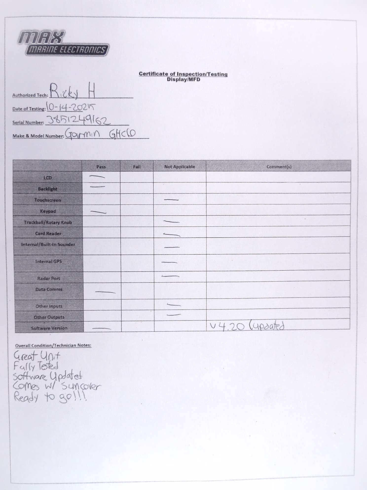All items sold at Max Marine Electronics come as you see in the pictures provided, with only the parts and accessories stated in the description section named “What’s Included”. IF YOU DO NOT SEE SOMETHING YOU EXPECT TO BE INCLUDED IN THE DESCRIPTION WE PROVIDE, IT WILL NOT BE INCLUDED. Read all descriptions thoroughly. There are times when a display is used only to show the item being sold is functional and working properly. In this case, these displays are not included. If you have any questions feel free to send a message or call Max Marine Electronics Inc, Pompano Beach, Florida. We always want to be transparent with our customers and fully disclose any information regarding the products we sell.
