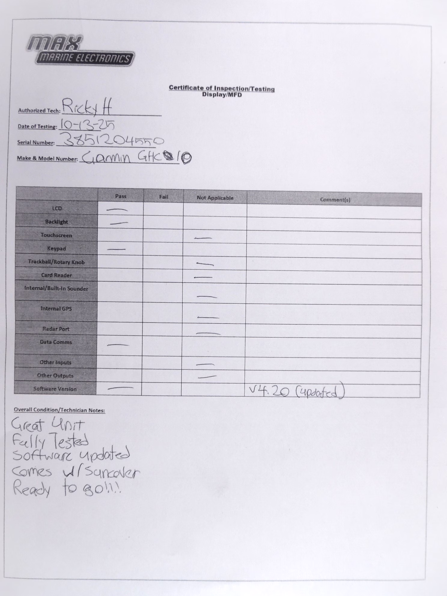 All items sold at Max Marine Electronics come as you see in the pictures provided, with only the parts and accessories stated in the description section named “What’s Included”. IF YOU DO NOT SEE SOMETHING YOU EXPECT TO BE INCLUDED IN THE DESCRIPTION WE PROVIDE, IT WILL NOT BE INCLUDED. Read all descriptions thoroughly. There are times when a display is used only to show the item being sold is functional and working properly. In this case, these displays are not included. If you have any questions feel free to send a message or call Max Marine Electronics Inc, Pompano Beach, Florida. We always want to be transparent with our customers and fully disclose any information regarding the products we sell.