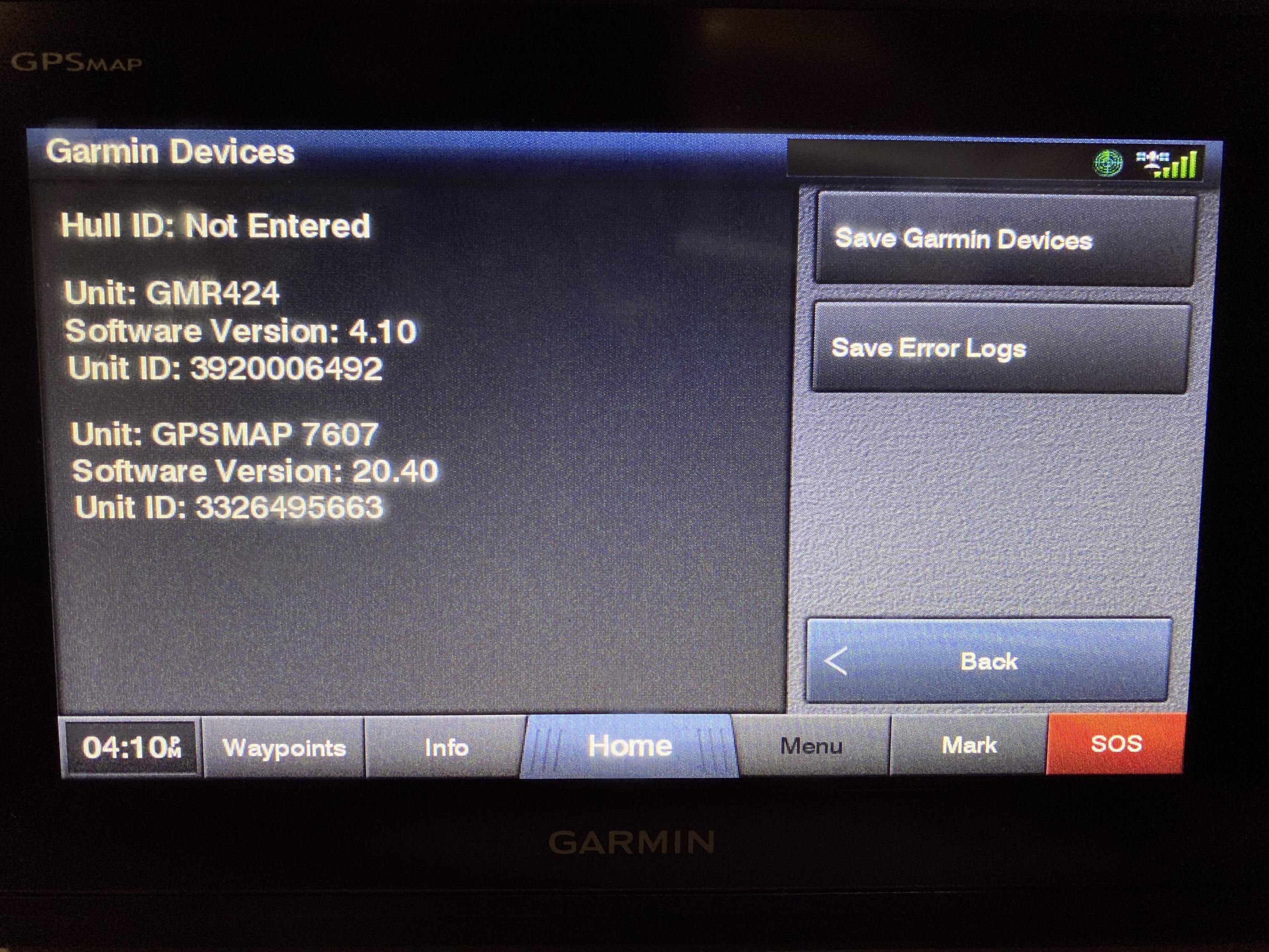 - GMR 424x xHD2 Pedestal SN# 102425413Unit ID# 3920006492
