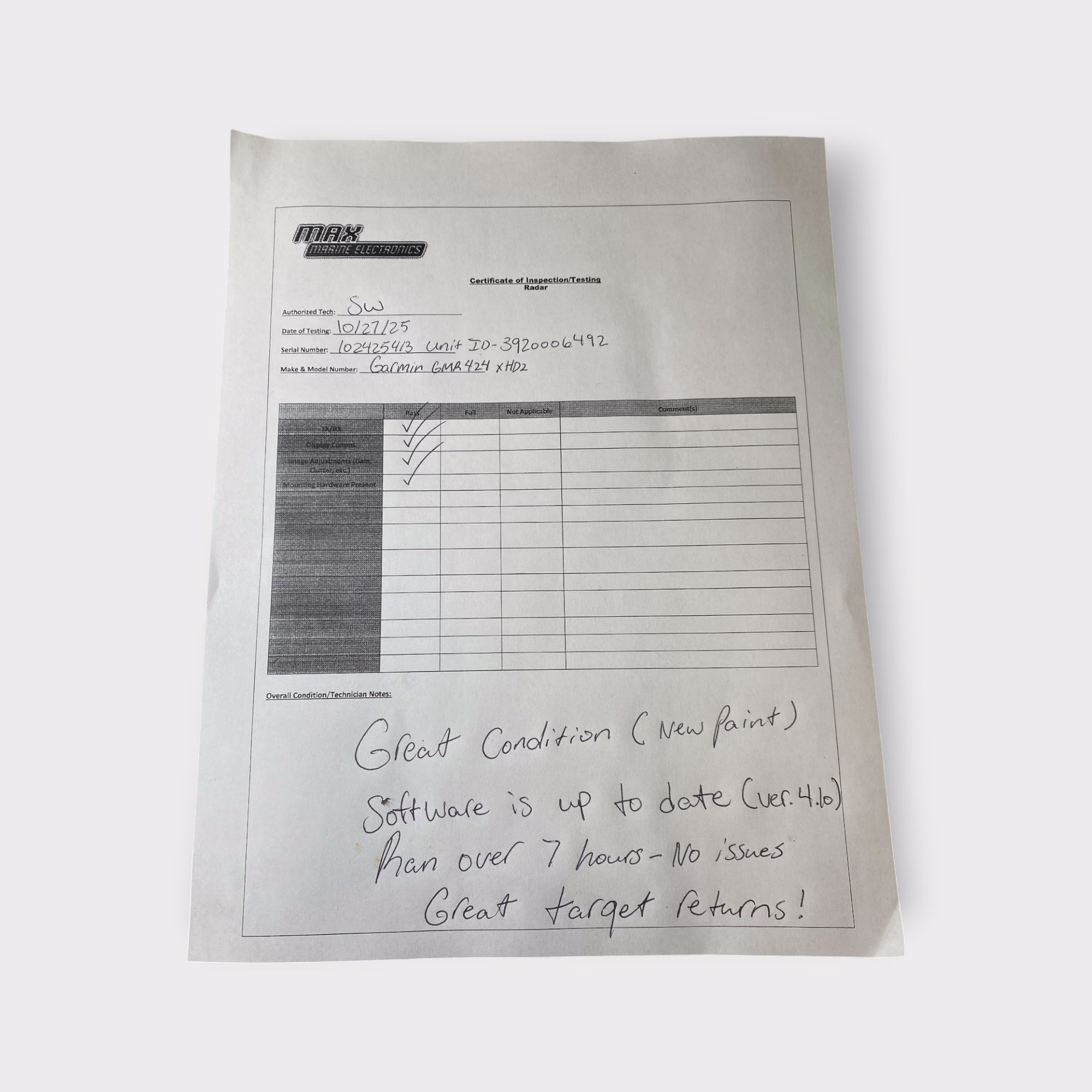 This means that after the Max Marine Electronics’ 90-day warranty (the same warranty Garmin gives to factory repaired products), there is no resource for these radars to be serviced. We certainly hope and expect the radars will last well beyond the warranty period, and we have put a lot of time into trying to make the best of the situation with these radars. We believe that if buying a used Garmin radar, buying one of ours will give buyers the best shot at a reasonable service life