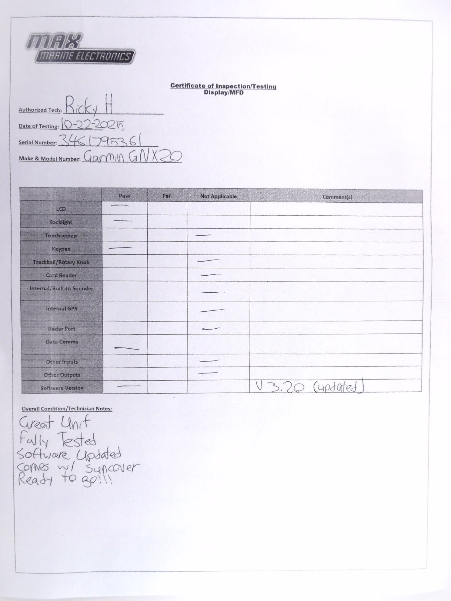 All items sold at Max Marine Electronics come as you see in the pictures provided, with only the parts and accessories stated in the description section named “What’s Included”. IF YOU DO NOT SEE SOMETHING YOU EXPECT TO BE INCLUDED IN THE DESCRIPTION WE PROVIDE, IT WILL NOT BE INCLUDED. Read all descriptions thoroughly. There are times when a display is used only to show the item being sold is functional and working properly. In this case, these displays are not included. If you have any questions feel free to send a message or call Max Marine Electronics Inc, Pompano Beach, Florida. We always want to be transparent with our customers and fully disclose any information regarding the products we sell.