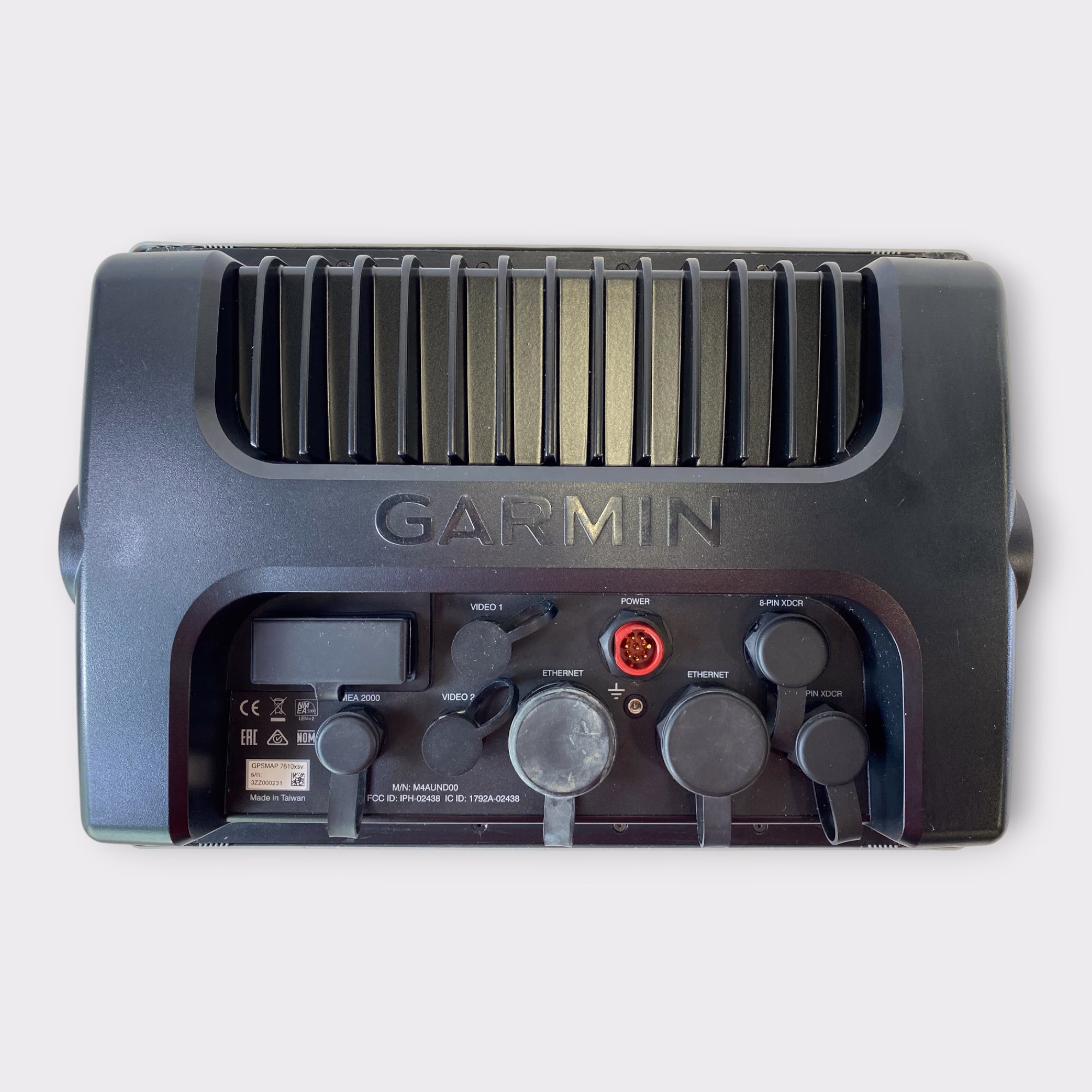 This listing is for a GPSmap 7610XSV MFD display. We confirmed working functionality of the NMEA2000 port, 8-pin and 12-pin transducer port, internal GPS, and both network and both video ports and card slot 1 and 2 is fully functional. Internal GPS is precises and responsive. Unit was updated to the latest software Garmin has to offer.
