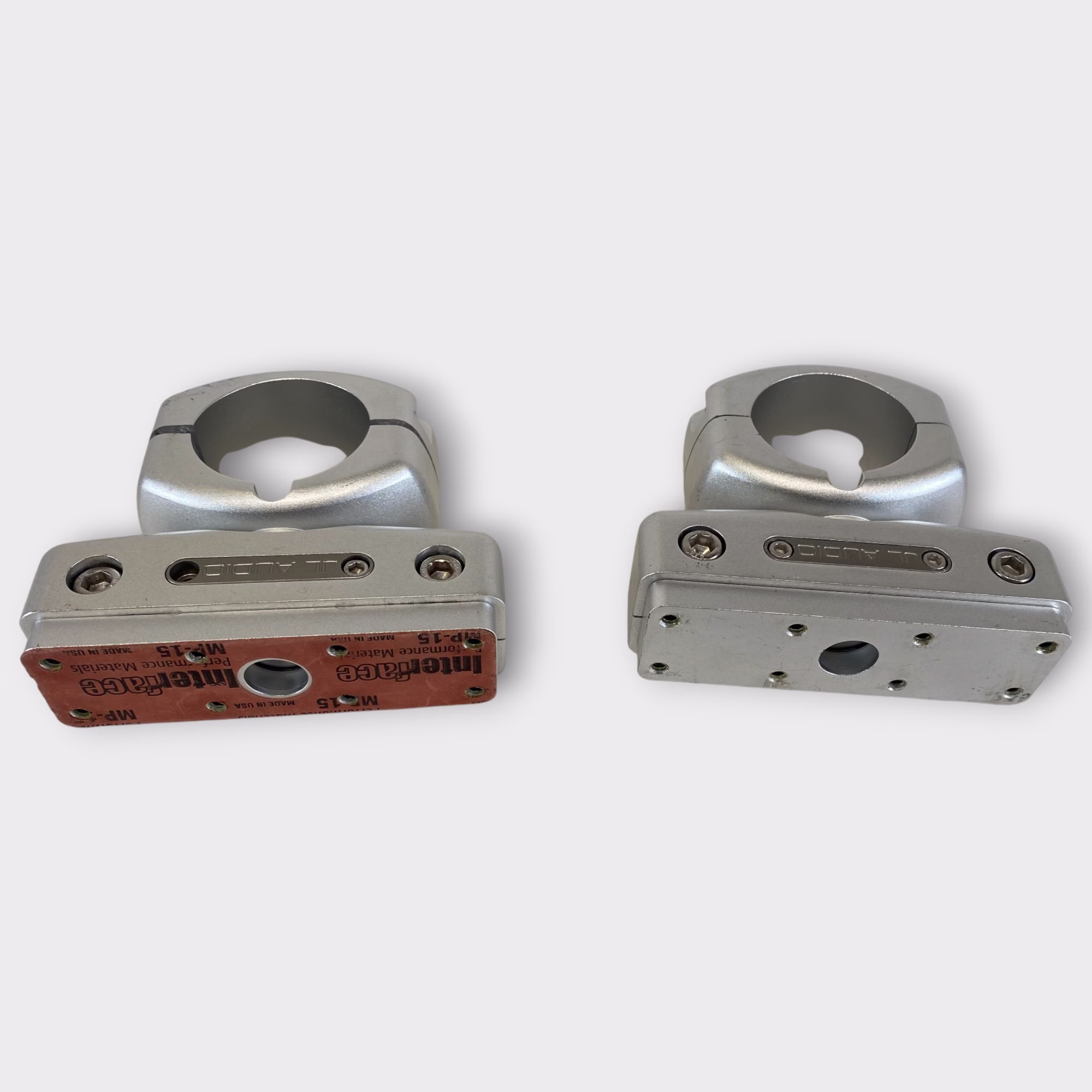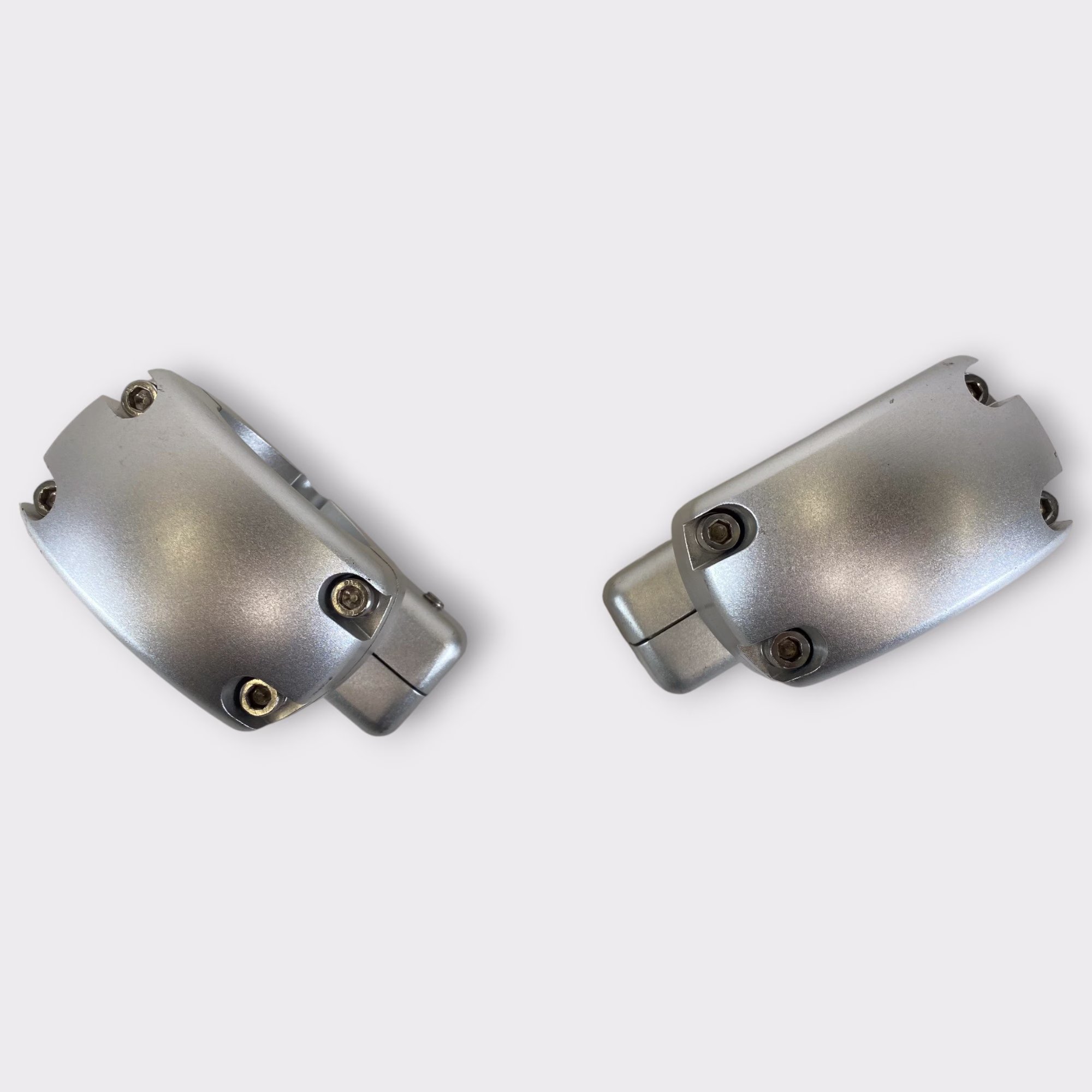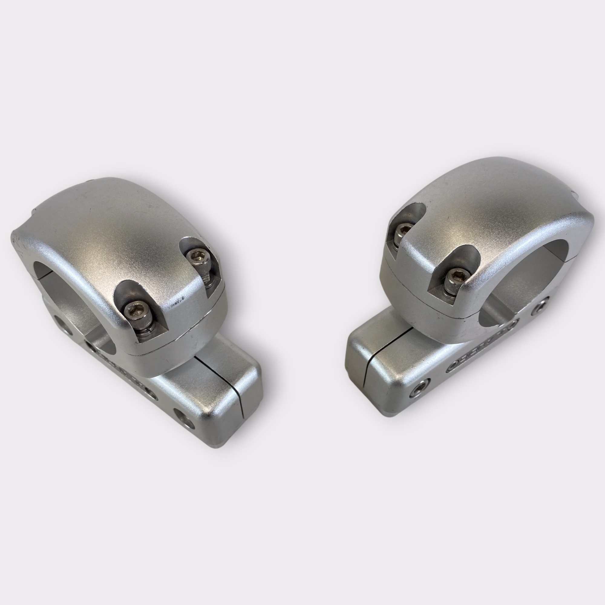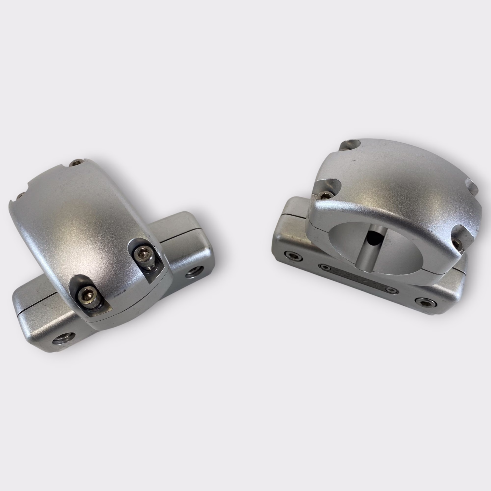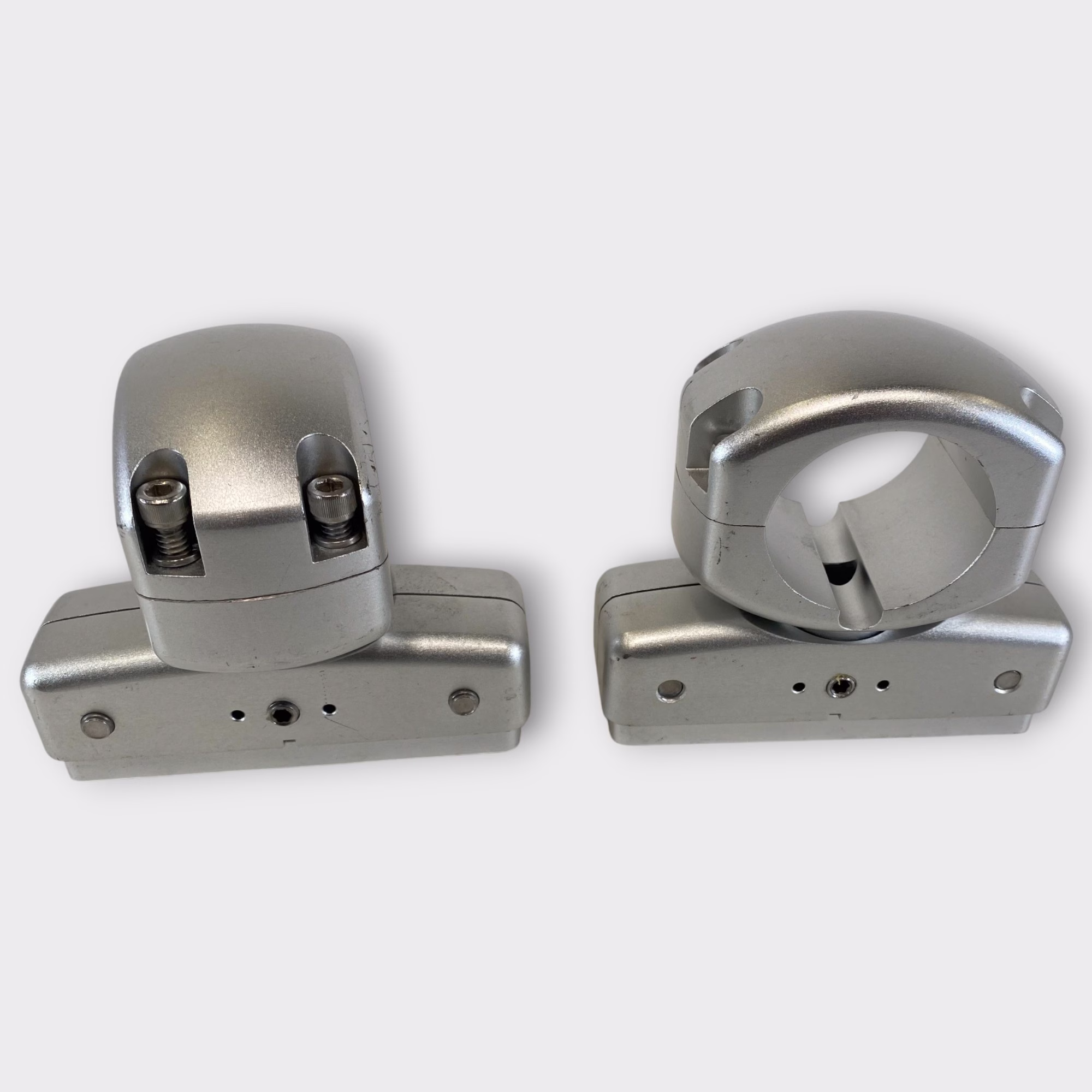 These clamps are in excellent used condition with only light cosmetic signs of prior use. The swivel mechanisms move smoothly, and all mounting surfaces are in great shape.