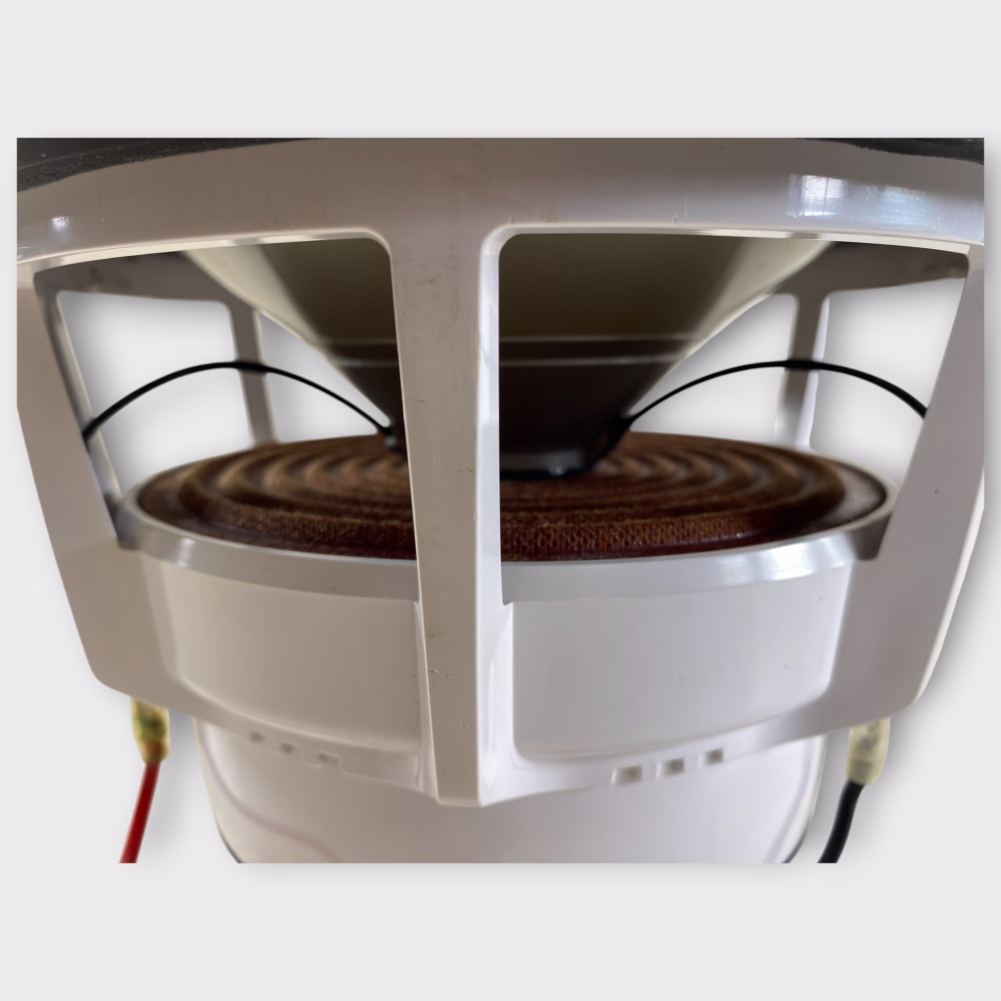 Injection-molded polypropylene cone with synthetic rubber surround