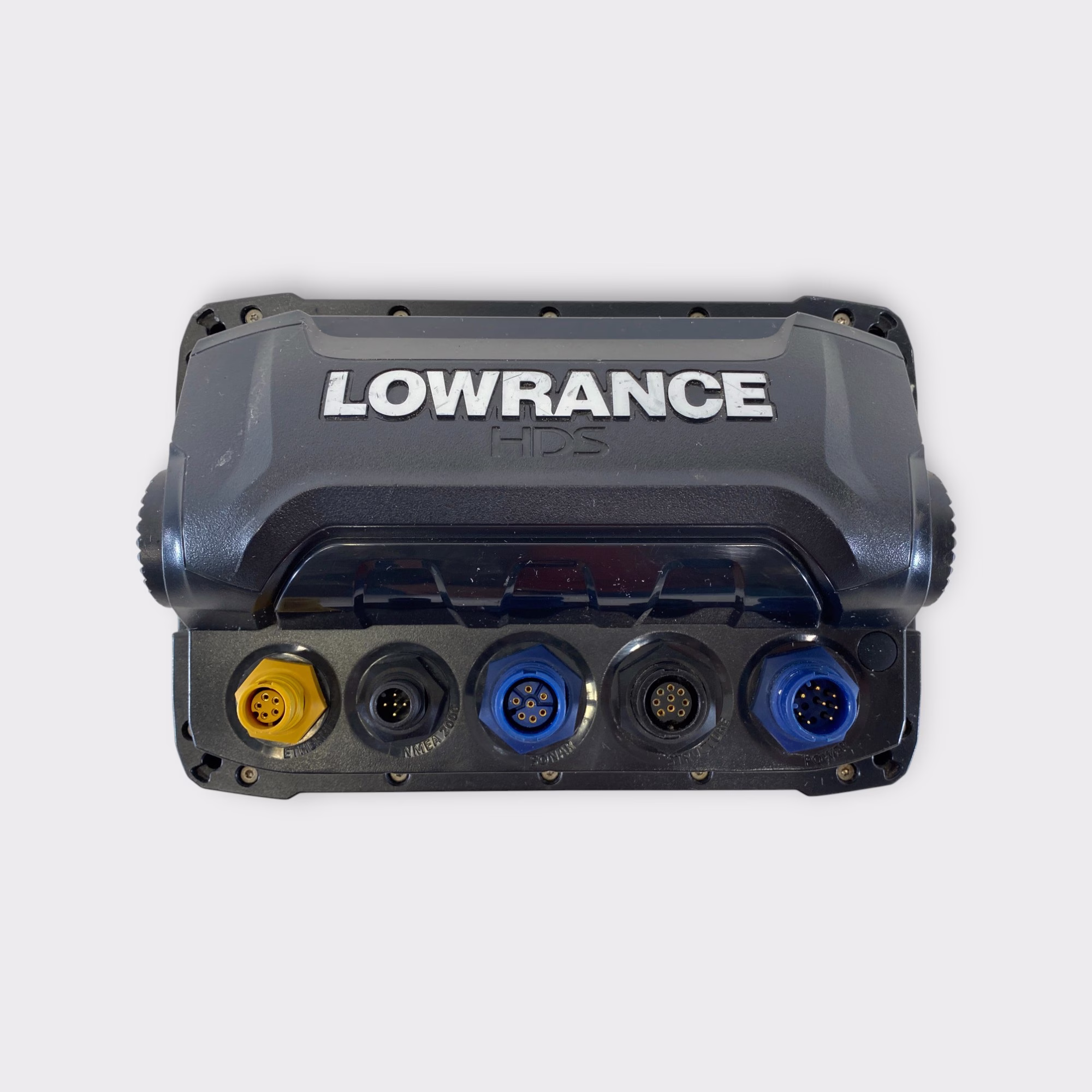 This is a Lowrance HDS7 Gen2 Touch Multifunction Display. The unit has undergone a comprehensive functionality and performance evaluation to ensure all features operate to manufacturer specifications. During testing, all primary interfaces were inspected and verified, including the chart card slot, NMEA2000 network connectivity, Ethernet/network port, power input, sonar, and StructureScan ports. Each function was individually tested under load conditions to confirm stable and consistent operation.
