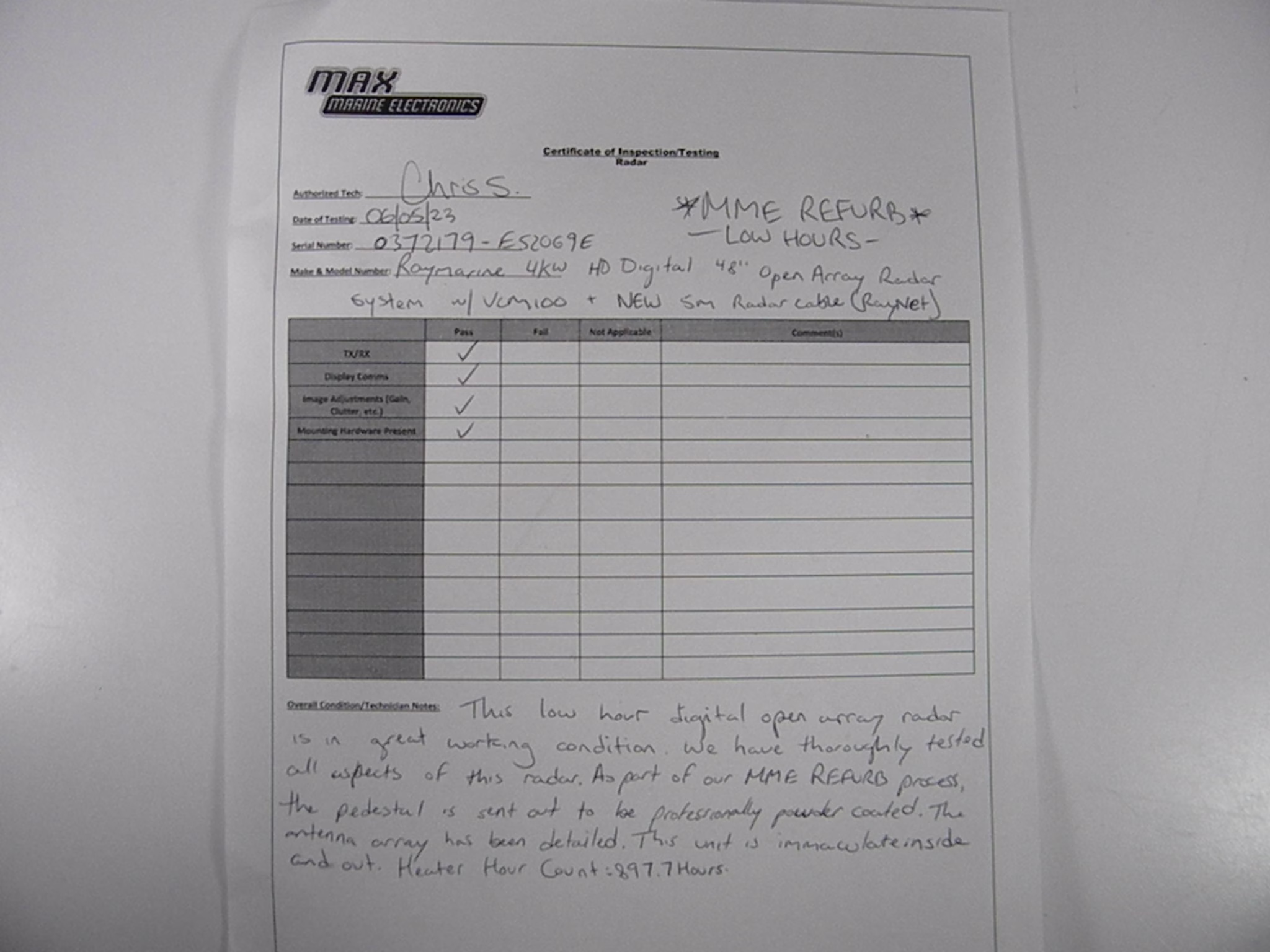 To cap off our MME REFURB process, we update the software to the latest provided by Raymarine. This radar is then put through rigorous testing for several hours to ensure that the unit is in great overall working condition.