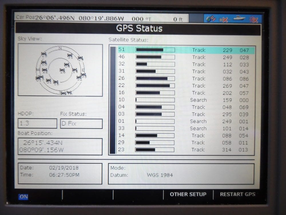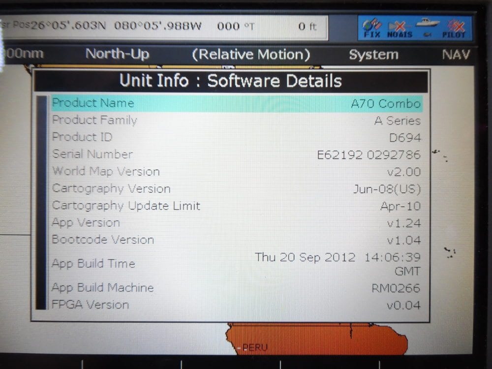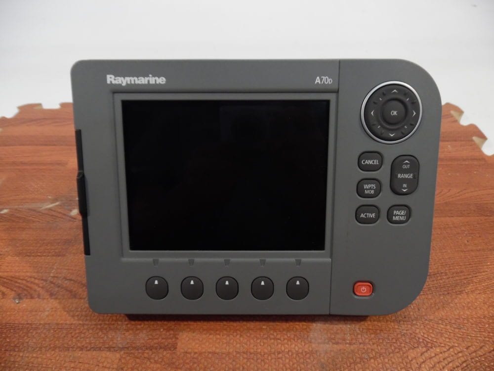 This is a Raymarine A70D Chartplotter/Fishfinder display. We tested the chart card reader, internal GPS, and also the Seatalk Ng port for external GPS.