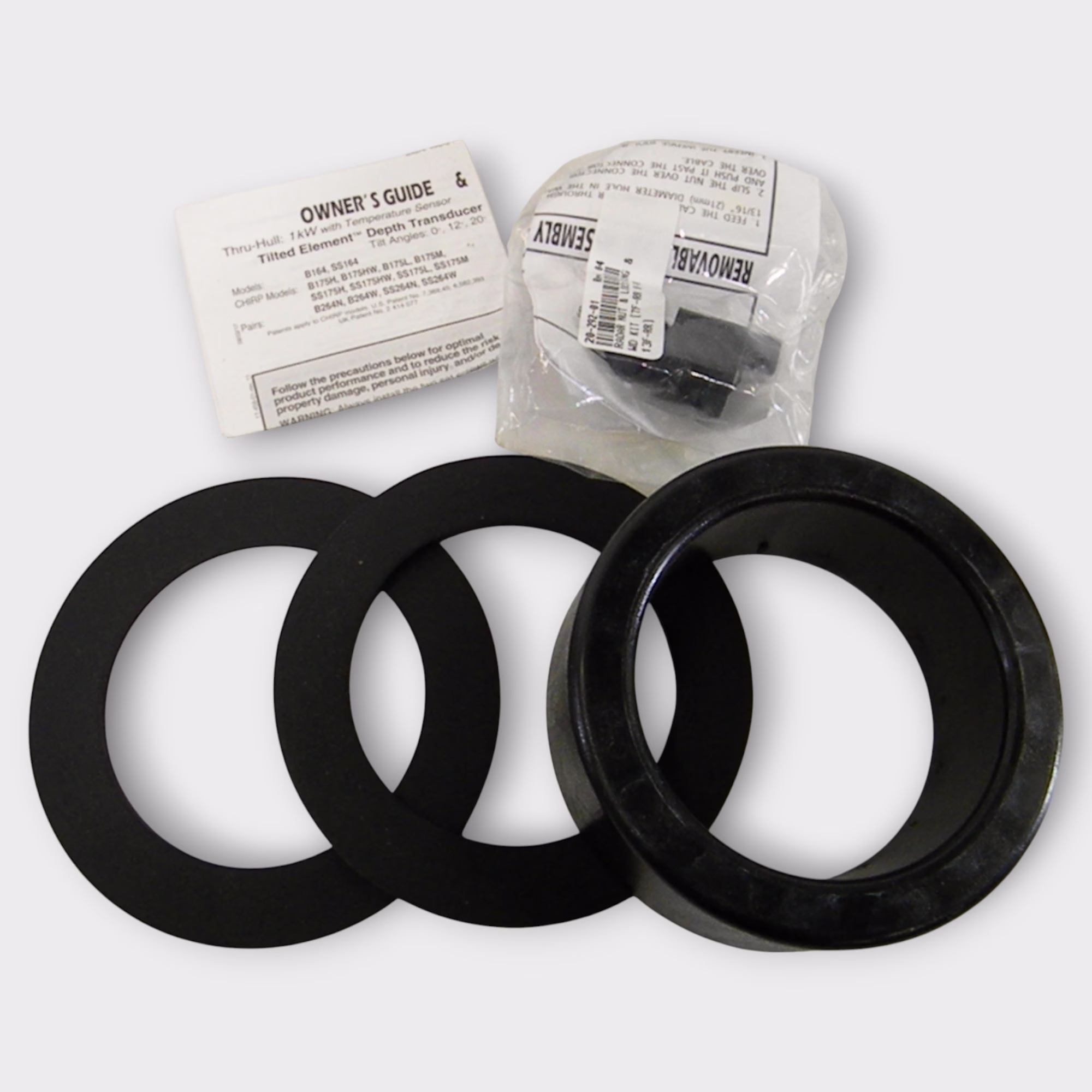 The transducer is a 1000w 12 degree tilted element 50/200khz transducer designed for installation on deadrises between 8 and 16 degrees.. It comes complete with hull nut, plastic spacer, and 2x washers.