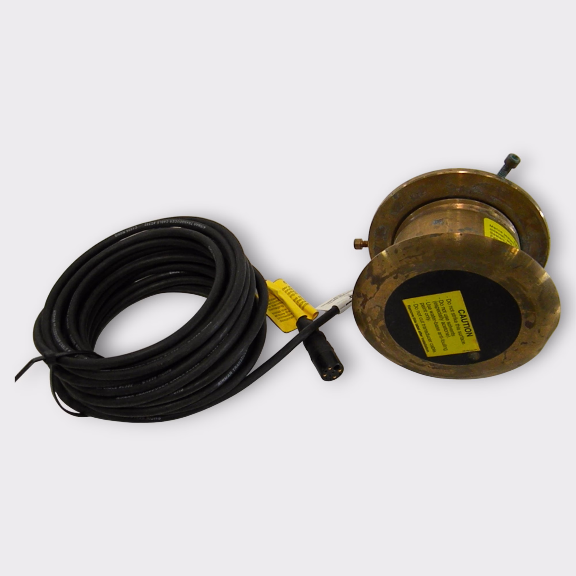 Additional Notes: This transducer was dropped prior to installation which created a dent in the lip. The transducer was never installed and was kept onboard as a spare but never used/installed hence the spots of discoloration on the bronze housing. We have filed down the dent on the backside of the lip allowing the transducer to be installed without compromising it’s ability to be flush. Please see photos provided showing these areas. The serial numbers match the tag on the box. The box and parts bag inside were compromised by the original installer but as mentioned, the transducer was not installed. Becuase of this, we are listing the product as a USED unit.