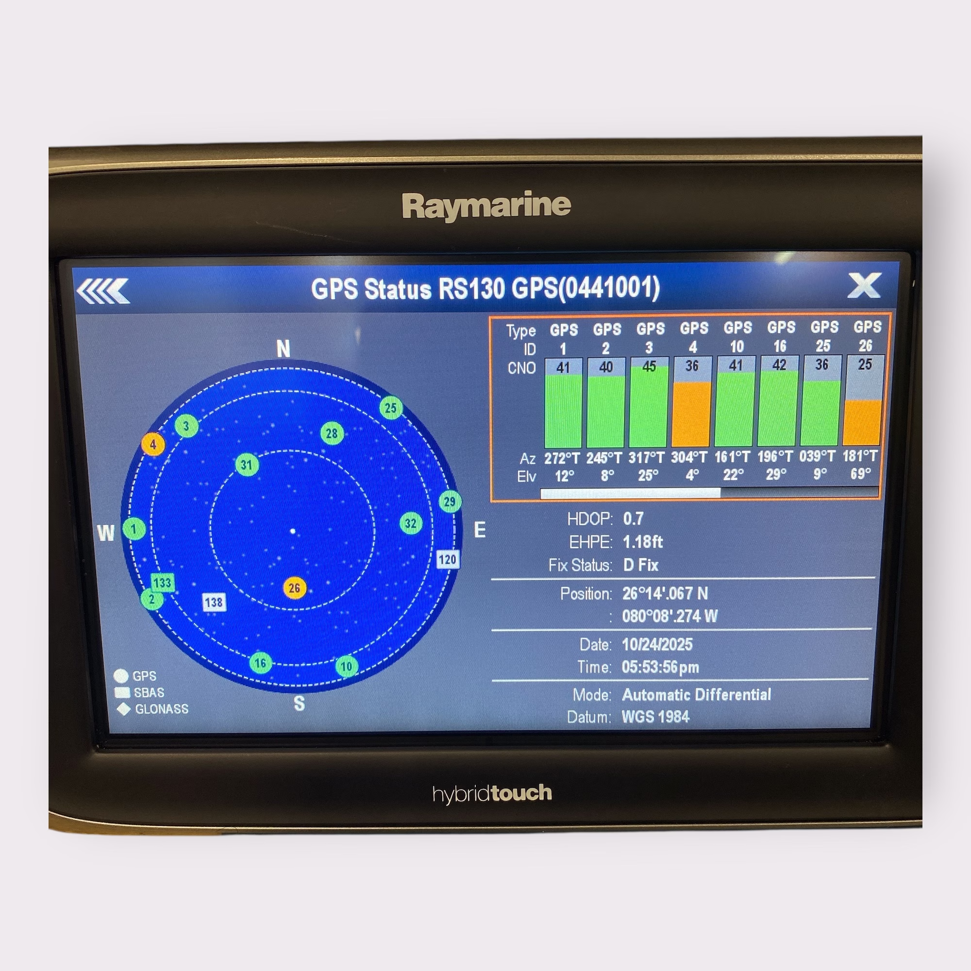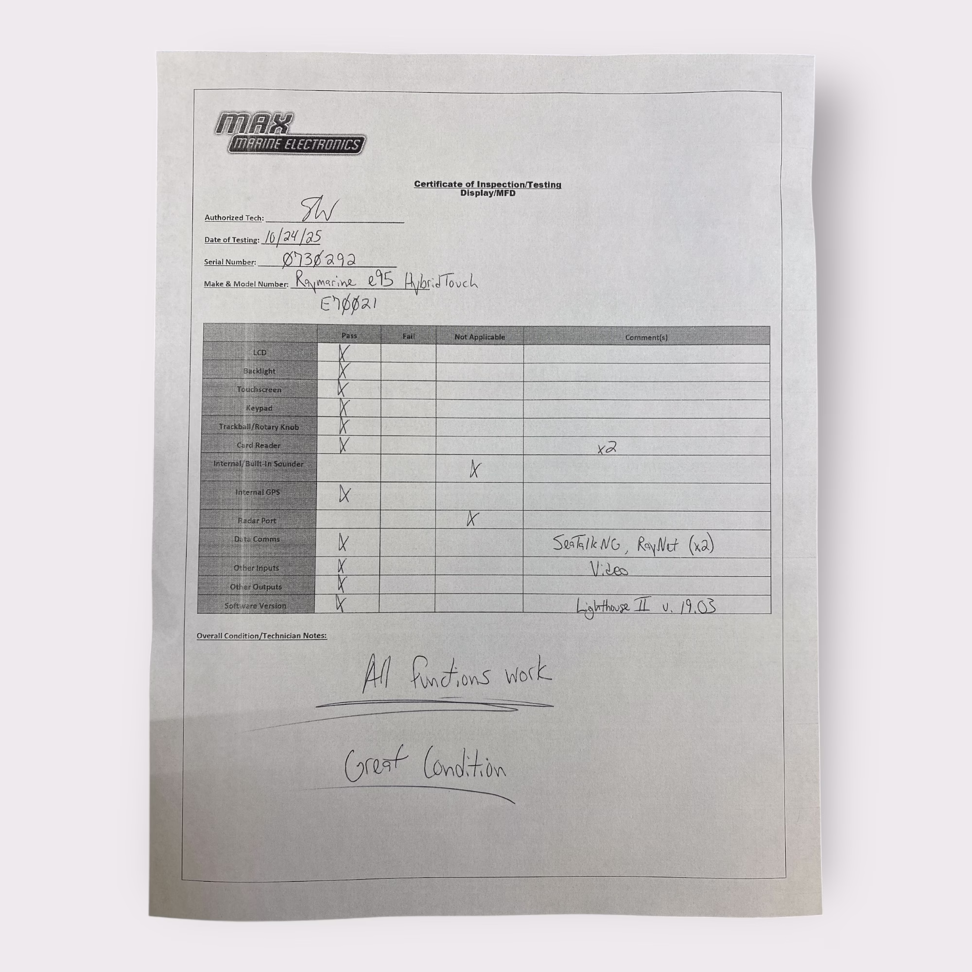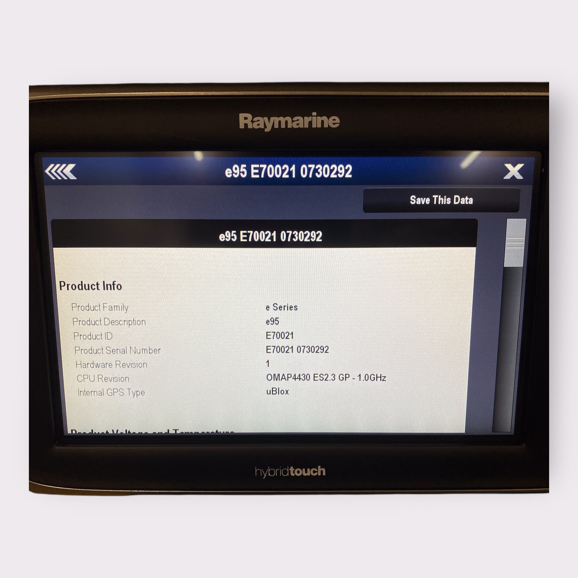 - Raymarine e95 HybridTouch Display S/N: 0730292