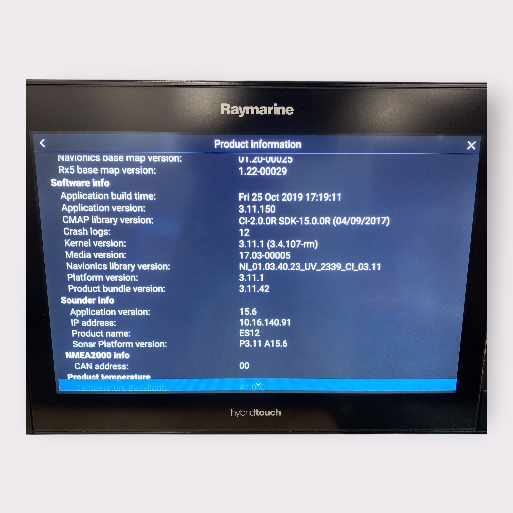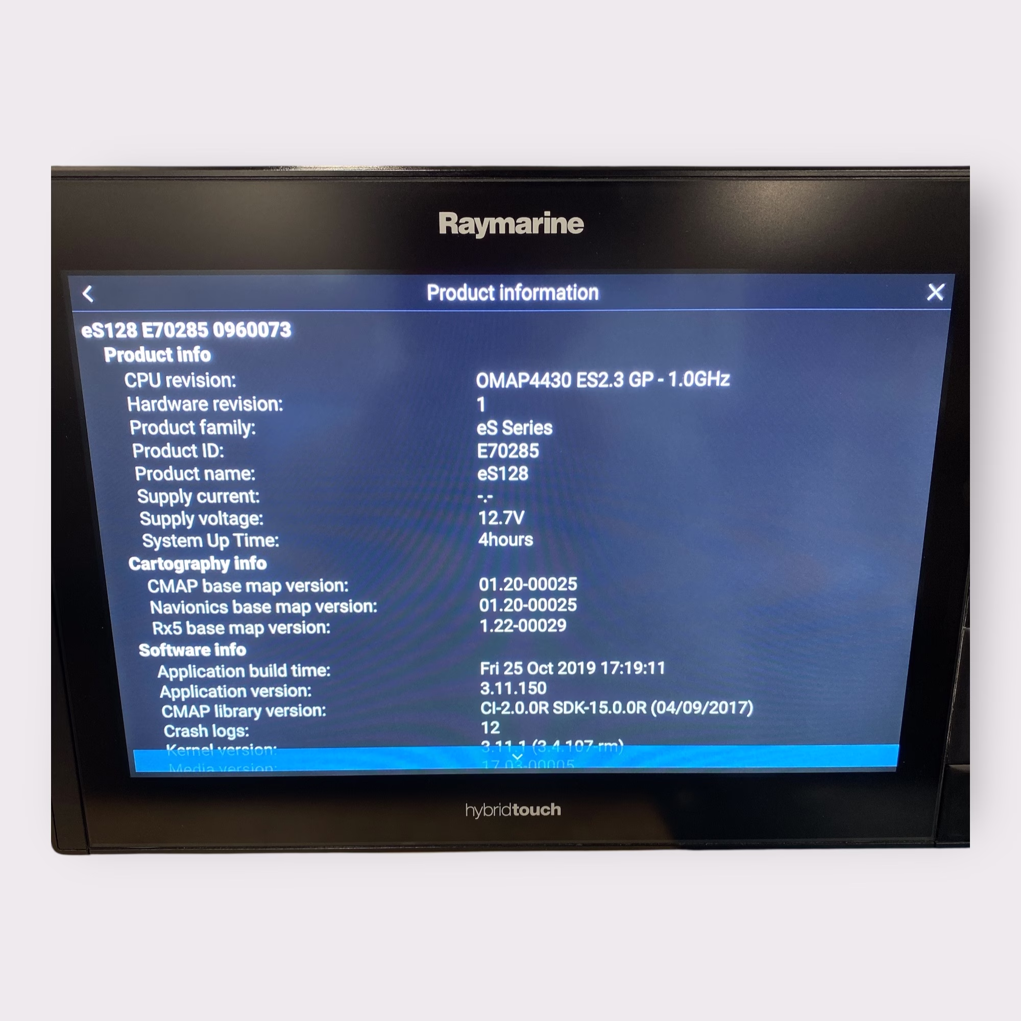 - Raymarine eS128 **NO TOUCH** MFD S/N: 0960073