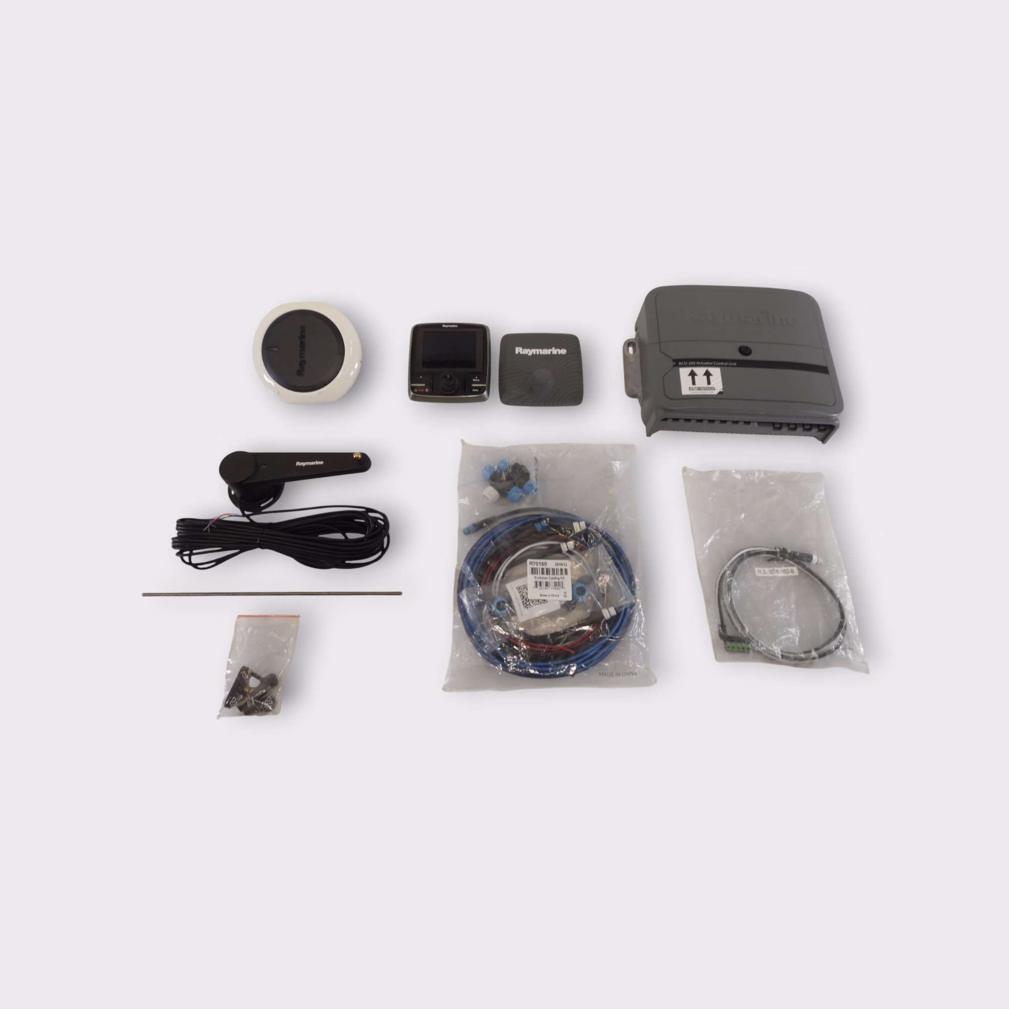 The ACU-200, P70R, and EV-1 are used but the cables and connectors in this kit are new along with the rudder feedback sensor.