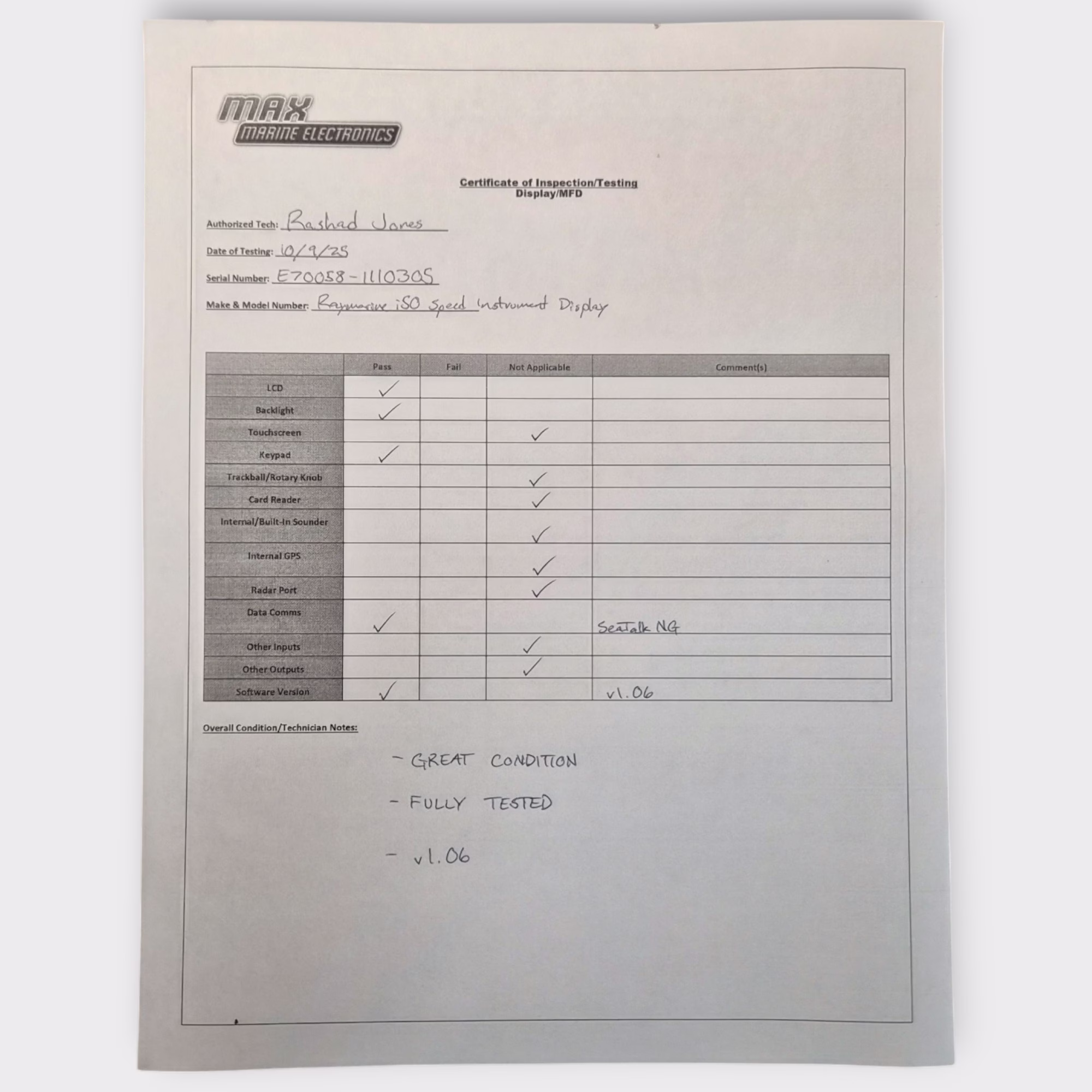 This listing is for a Raymarine i50 Speed Instrument Display that is in excellent working condition. The display has been fully tested to verify functionality – as a Master display with a direct transducer connection as well as a Repeater via SeaTalkNG.