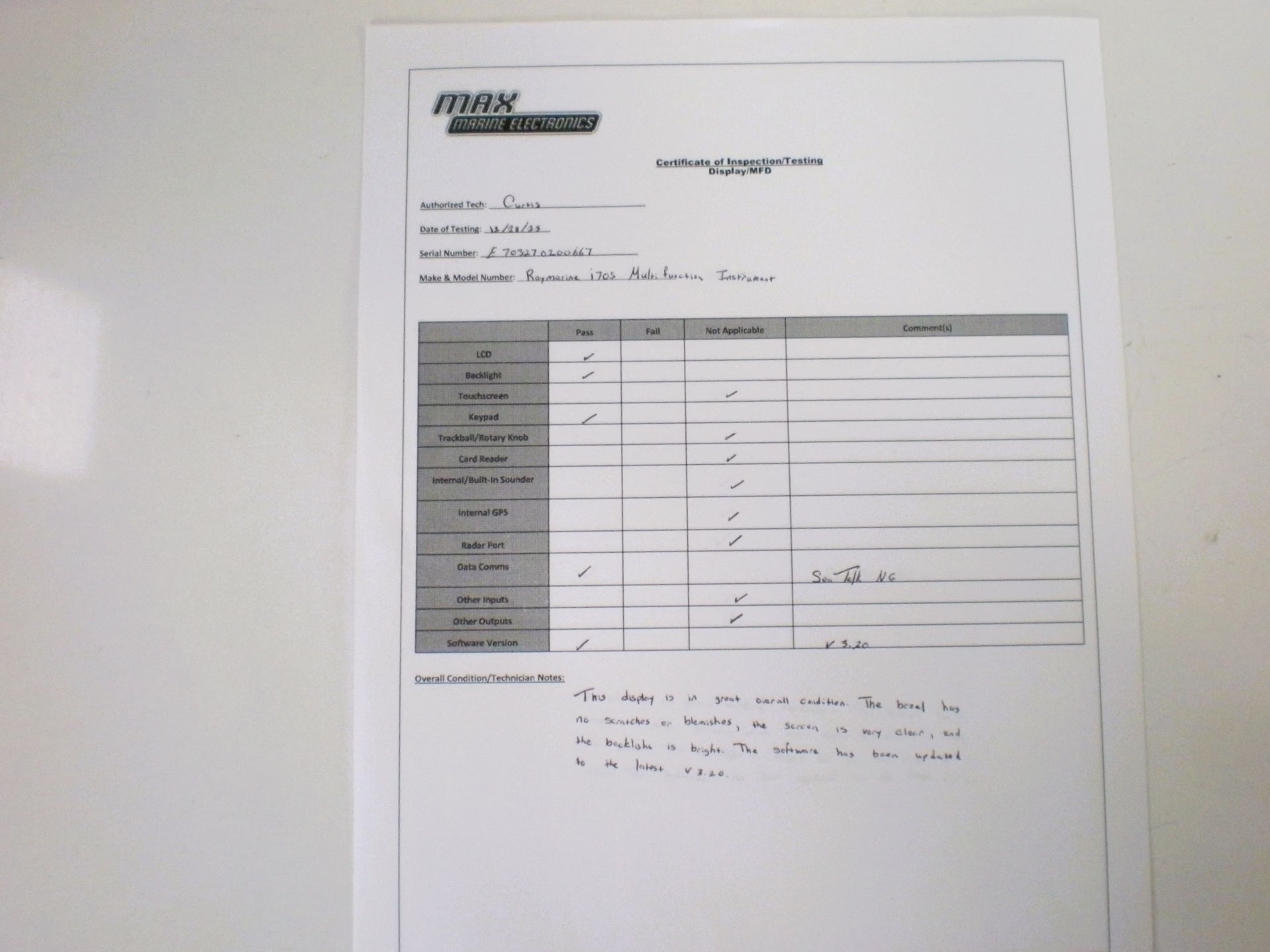Additional Notes: This unit is in great overall condition and has been fully tested. We have successfully tested all functions of the SeaTalkNG port and it is intact with no corrosion. All buttons are functional and the screen is very bright!