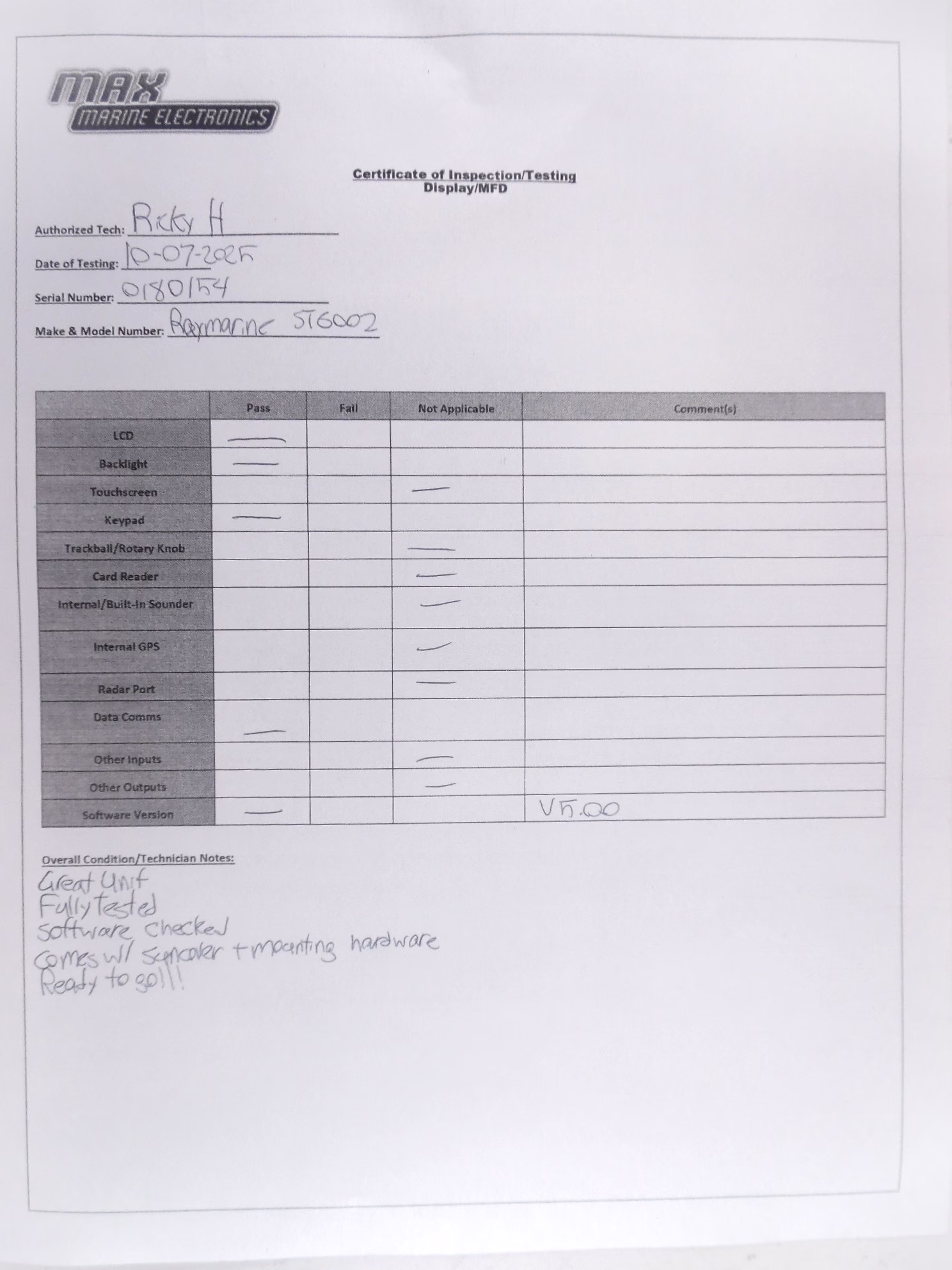 All items sold at Max Marine Electronics come as you see in the pictures provided, with only the parts and accessories stated in the description section named “What’s Included”. IF YOU DO NOT SEE SOMETHING YOU EXPECT TO BE INCLUDED IN THE DESCRIPTION WE PROVIDE, IT WILL NOT BE INCLUDED. Read all descriptions thoroughly. There are times when a display is used only to show the item being sold is functional and working properly. In this case, these displays are not included. If you have any questions feel free to send a message or call Max Marine Electronics Inc, Pompano Beach, Florida. We always want to be transparent with our customers and fully disclose any information regarding the products we sell.