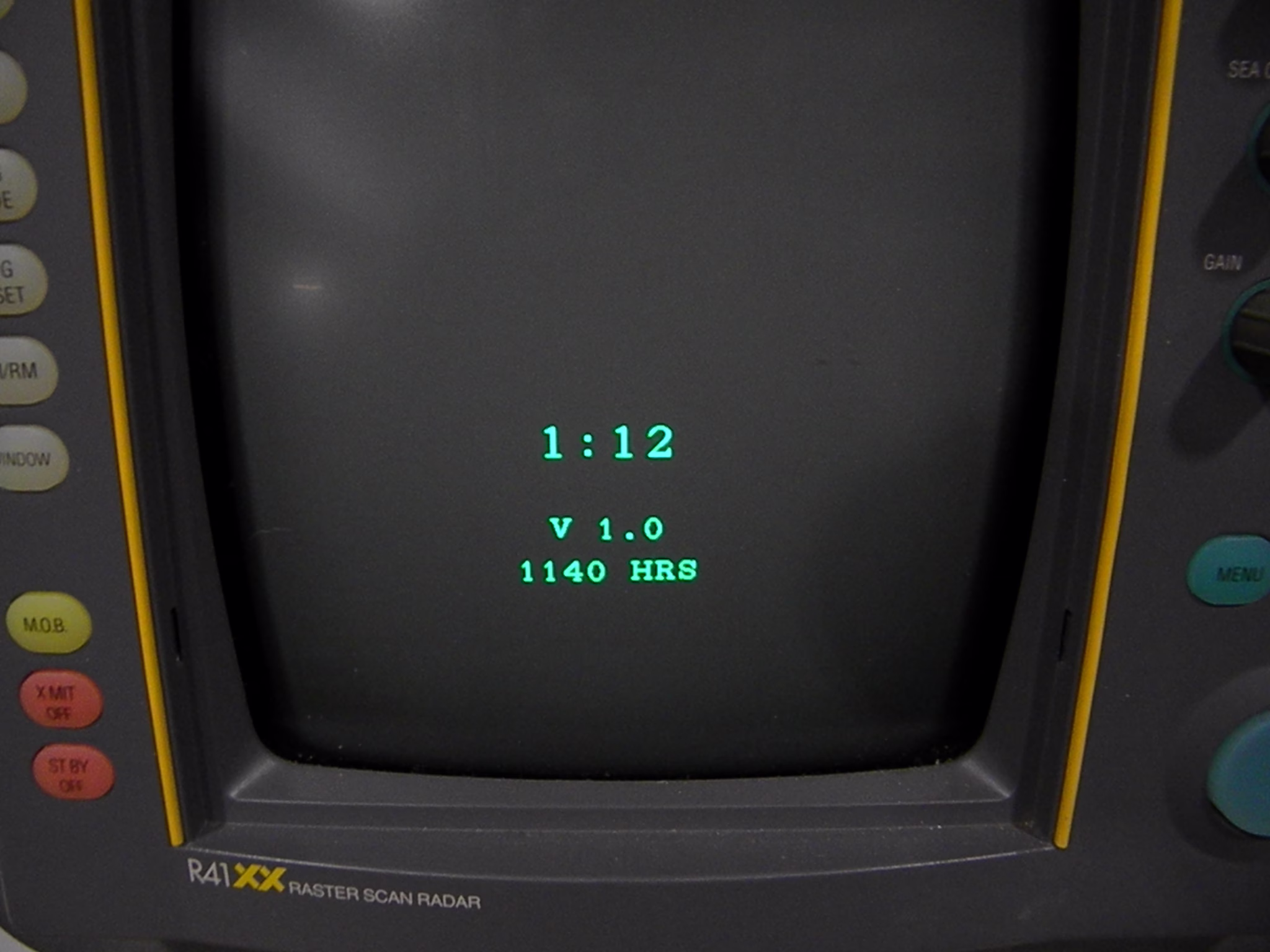 The R41xx 10″ Raster Scan Radar display has 1140 hours. The screen is very clear and bright. All keys work on the keypads. The sun cover is clean and has no cracks.