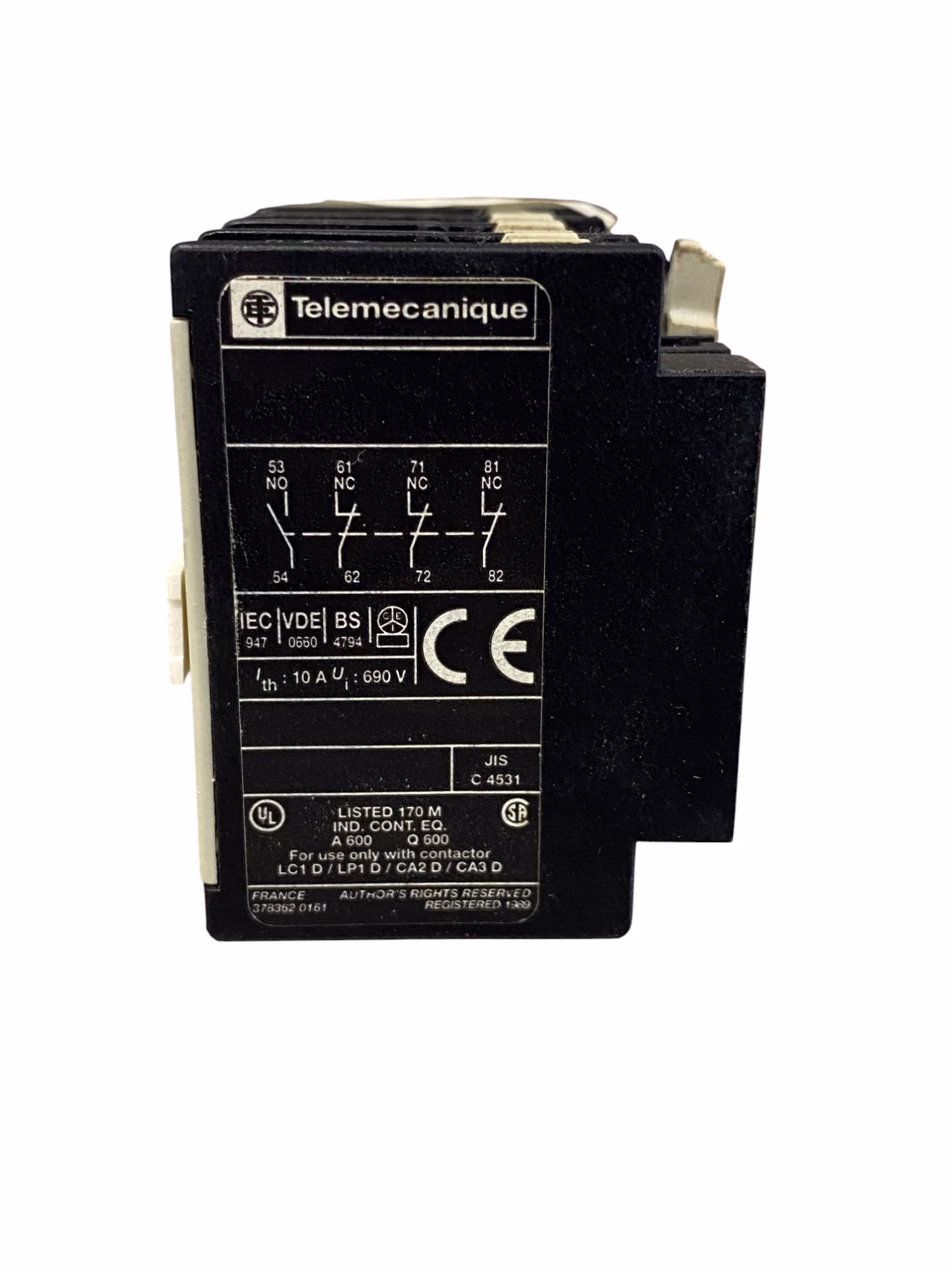 Additional Notes: This listing is for a Schneider Electric LA1 DN 13 Auxiliary Contact Block. The item is lightly used but remains in good condition.