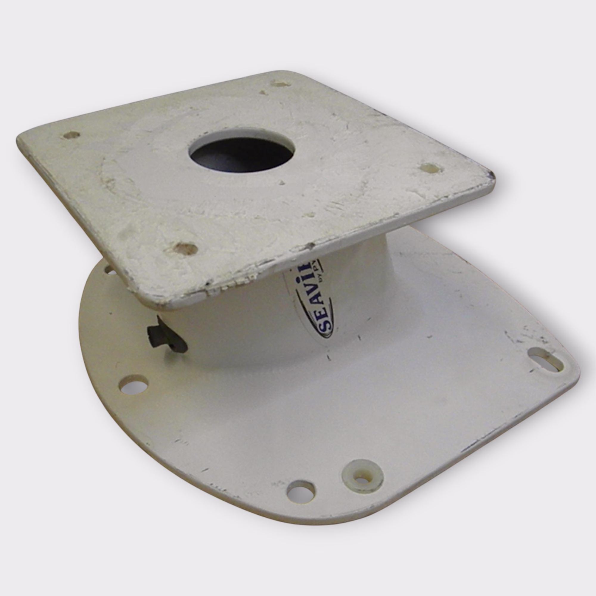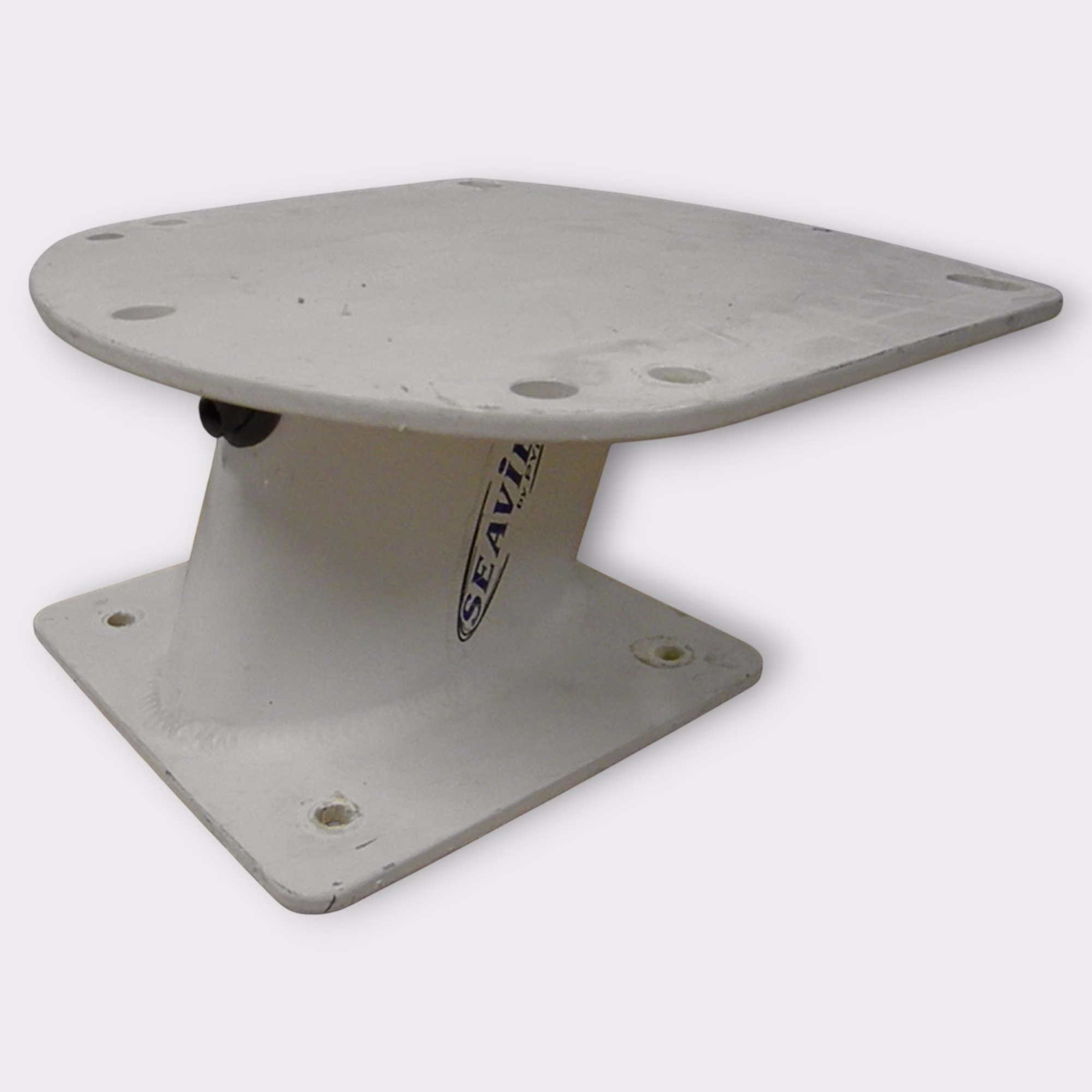 Additional Notes: This listing is for a SeaView PYI 5″ forward leaning radar mount that is designed for various radar domes listed in the compatible parts list below. There is rubber cable gland installed. The base of this mount had a decent amount of 5200 sealant on it. We were able to remove the majority of it but did not want to compromise the powder coating so there is some residual sealant left over.