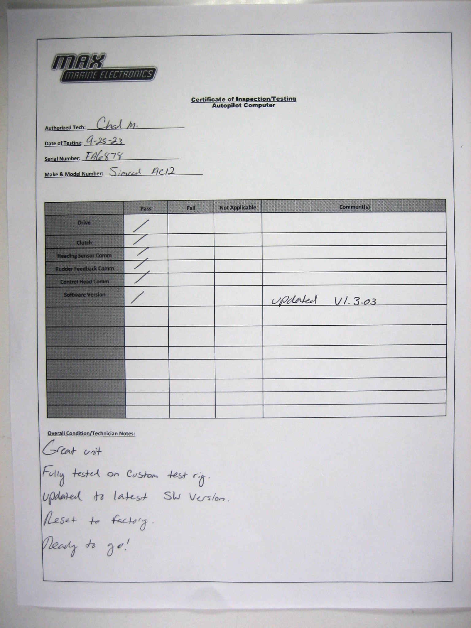 This AC12 autopilot computer was tested using a jig that simulates normal operating conditions.