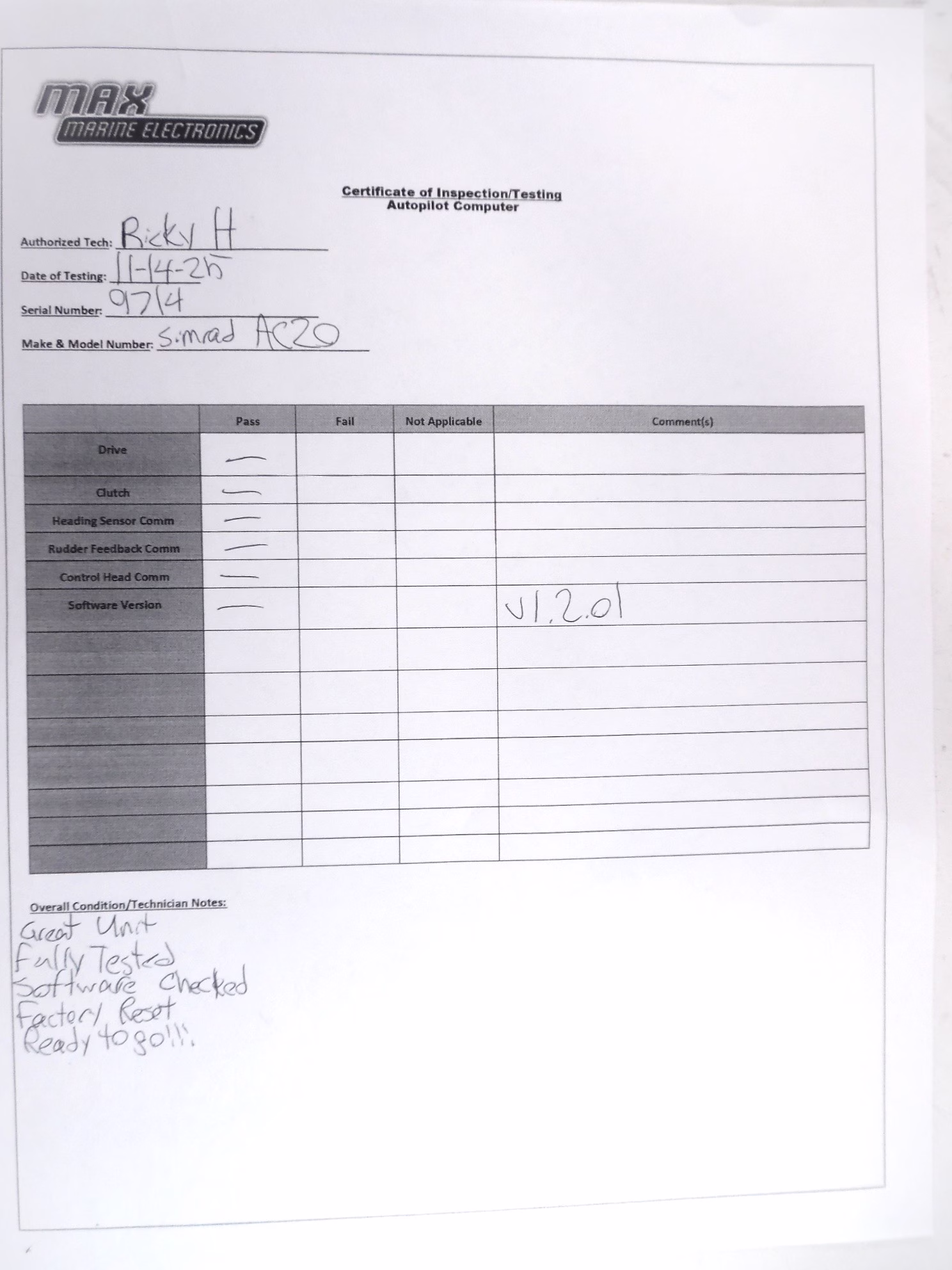 All photos are of the actual unit in action—we never use stock images. You’ll see the autopilot engaged, standby mode displaying rudder and compass data, and Lat/Lon data via NMEA from our Furuno test system.