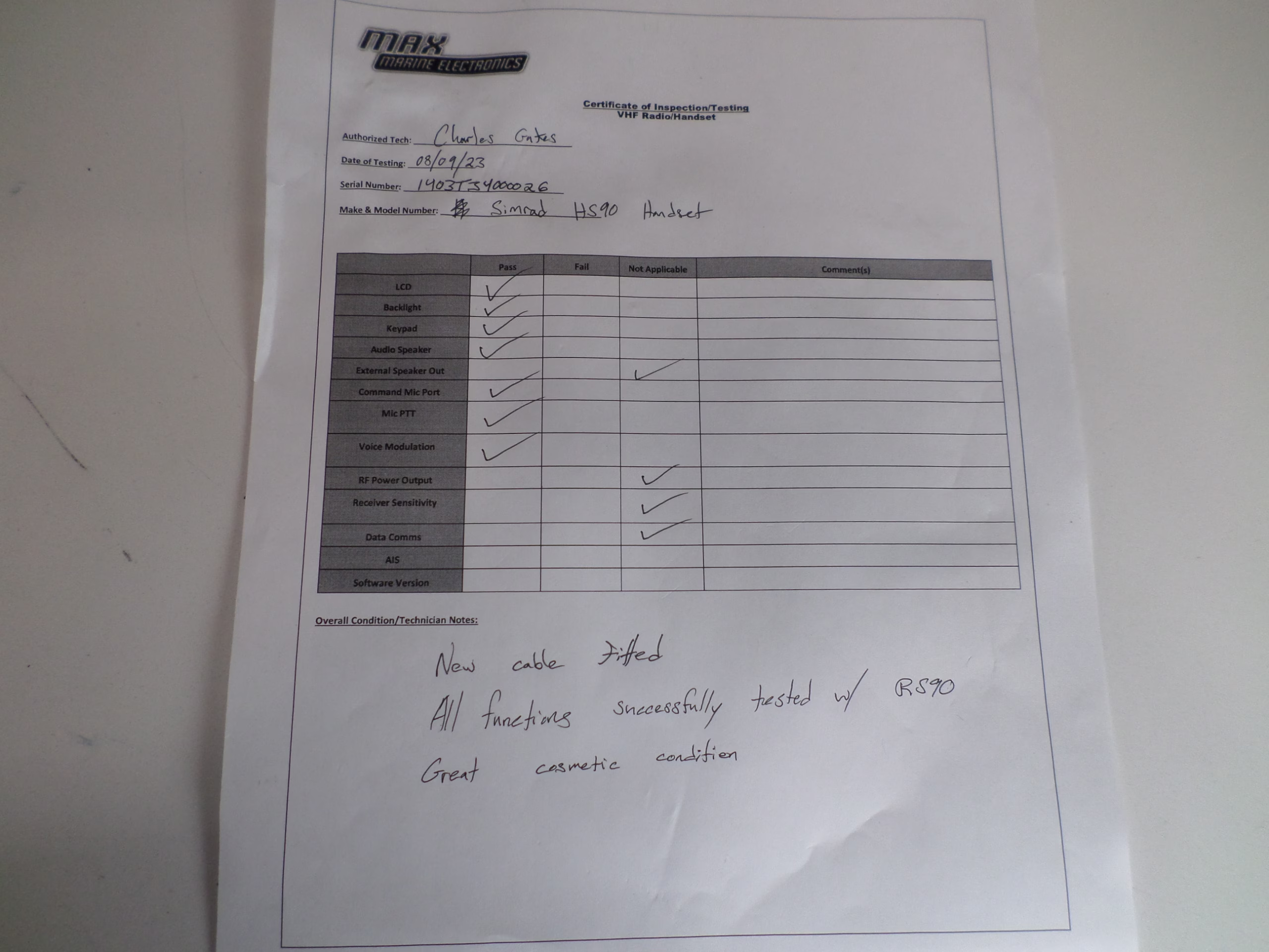 This unit was fully tested with a Simrad RS90 and no issues were noted.