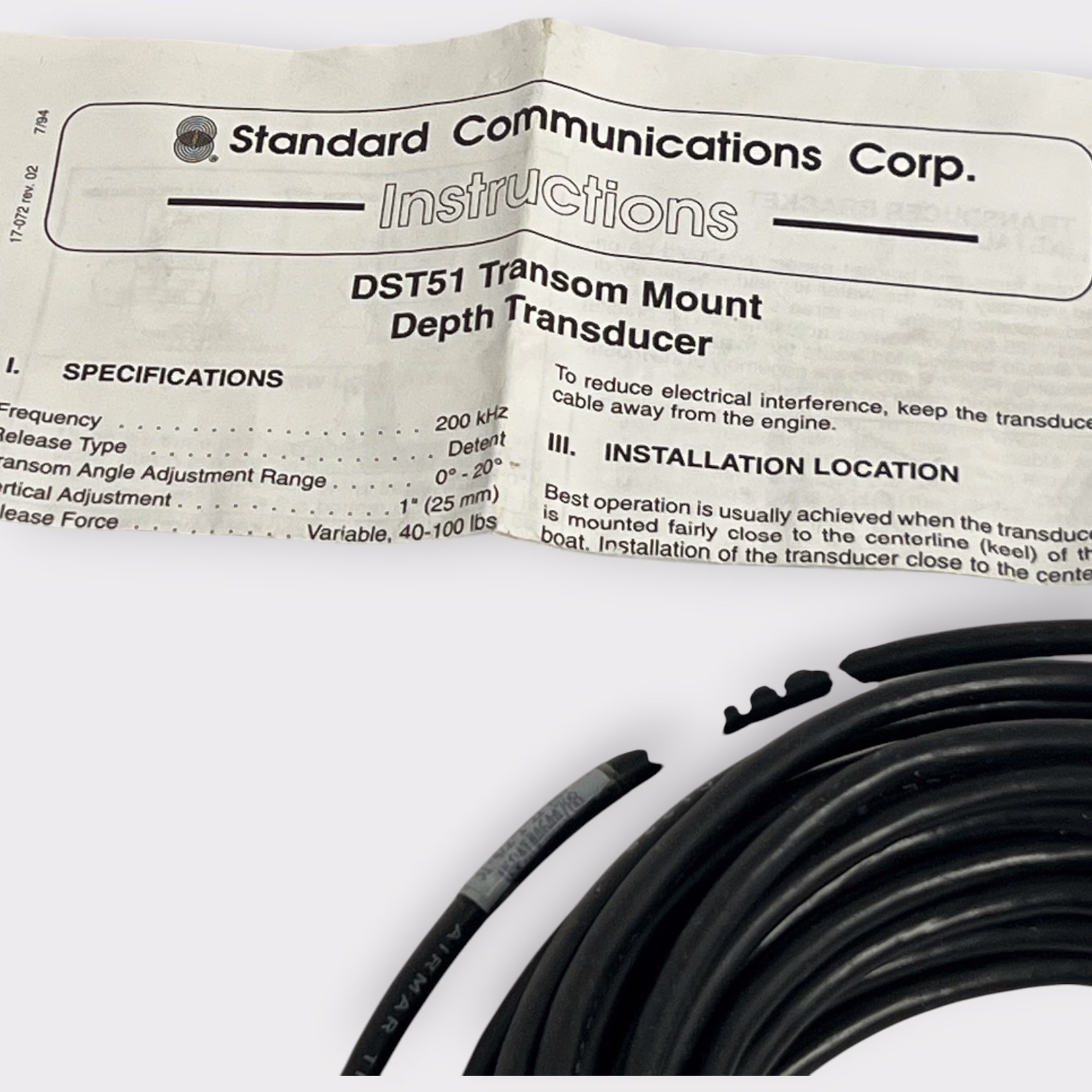 Additional Notes: This transducer is new and includes the mounting kit and 25’+ of attached cable.