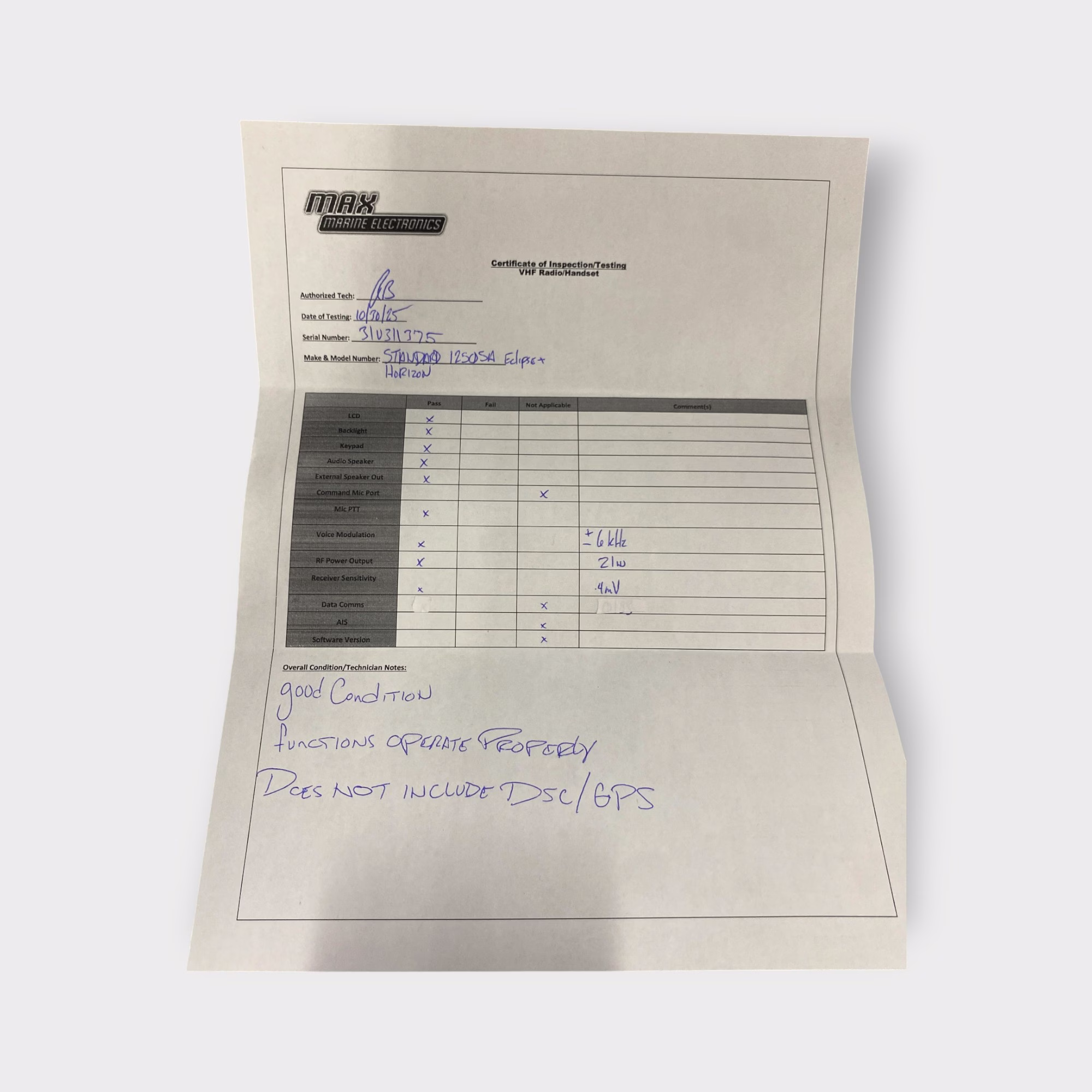 See photos for test sheet and details.