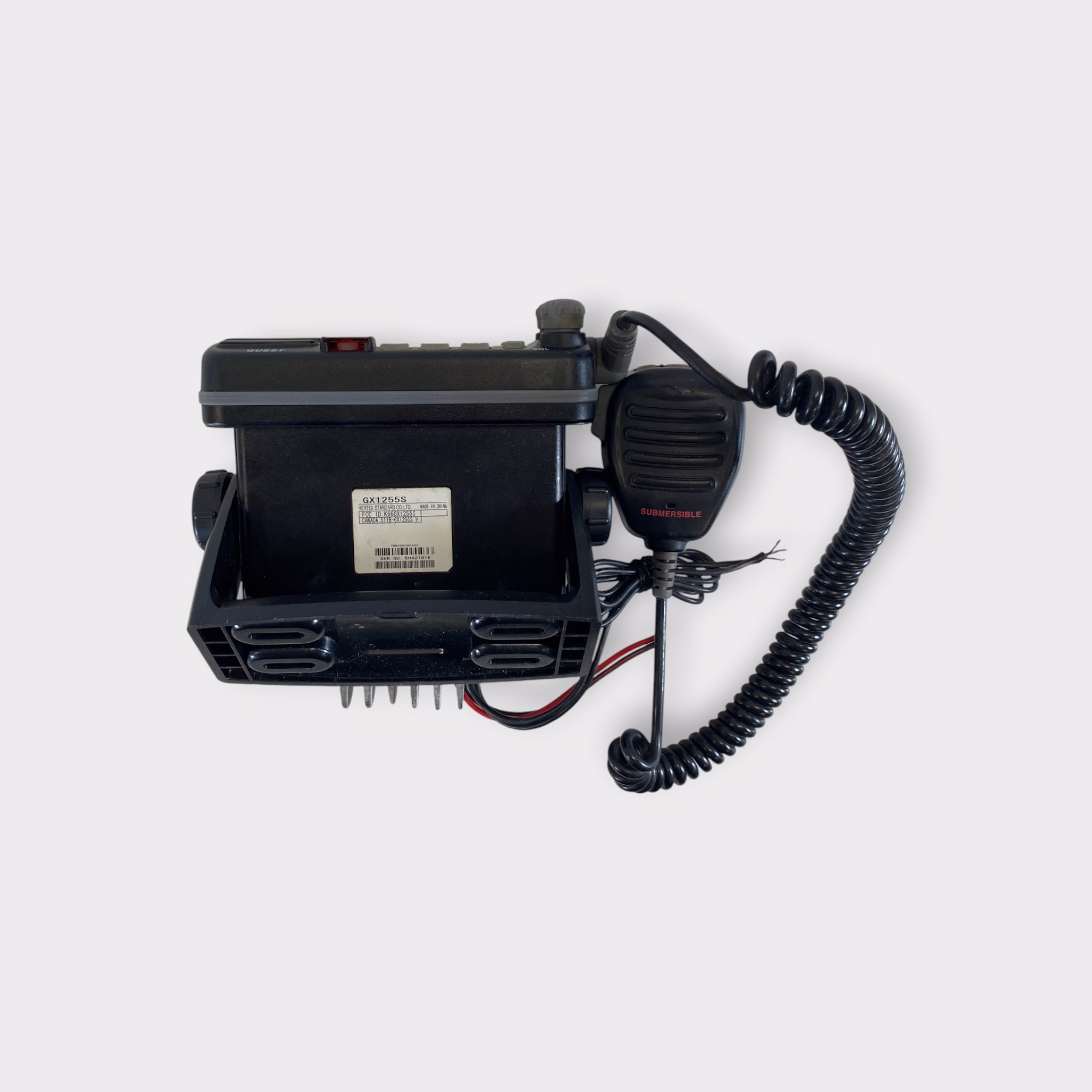 • SH GX1255S Quest VHF Radio w/ attached fist mic s/n:5H421816 Mounting Bracket