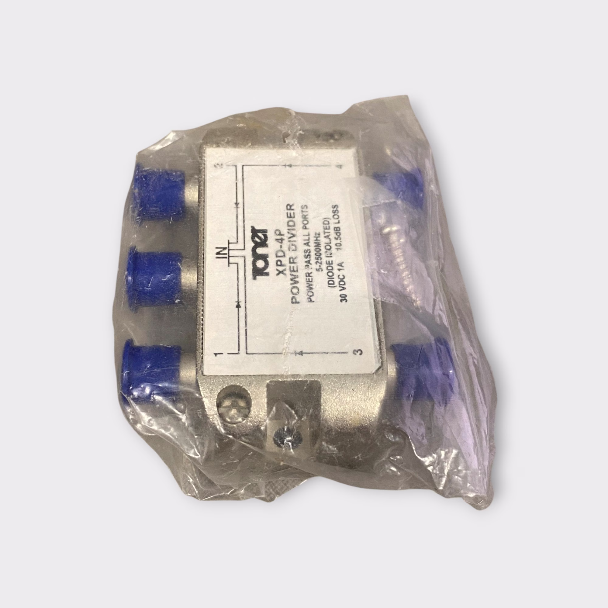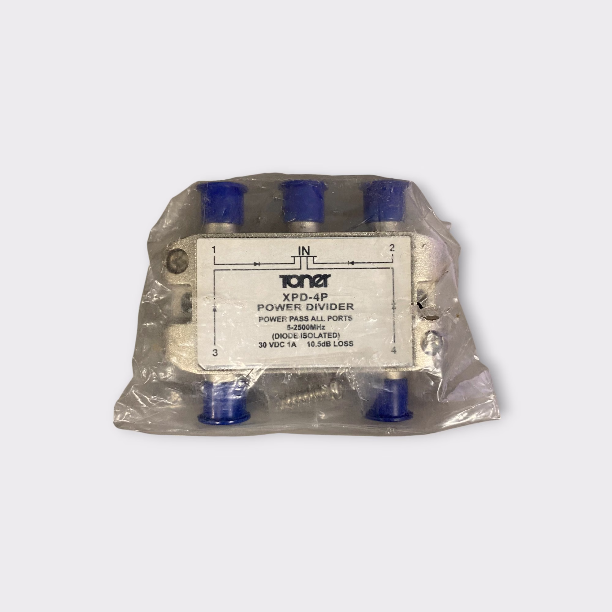 Additional Notes: This listing is for a Toner XPD-4P, 4-way L-Band Power Divider (5 to 2300 MHz). The item is new old stock, it remains sealed in the original packaging in excellent condition.