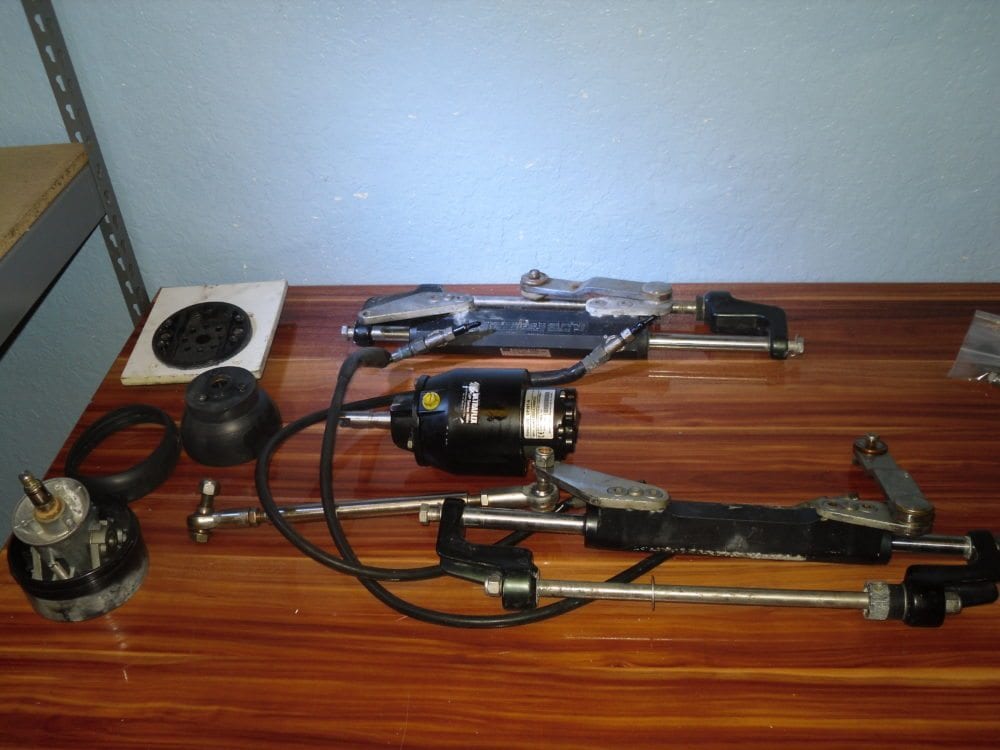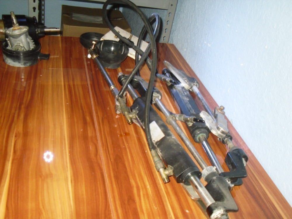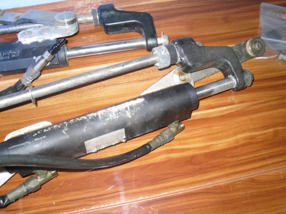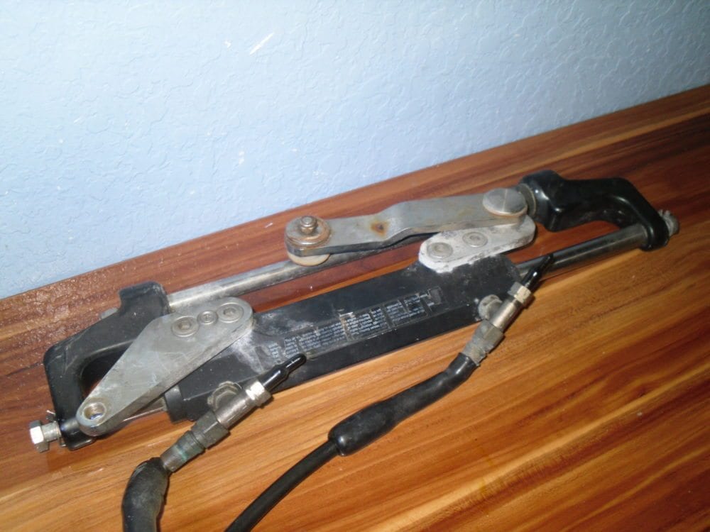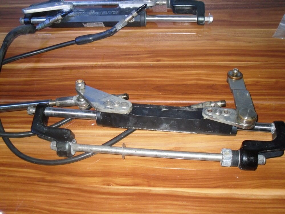 We recently brought in a full U-Flex dual ram + tilt helm system from a vessel that was repowered with outboards that have integrated steering. We have no history on this equipment but assume that most of it is in serviceable condition – price is reflective of this. There is no evidence of bad seals, the only thing we can say with certainty is the hoses will need to be replaced as they have been kinked in storage, and that they could use a good cleaning.