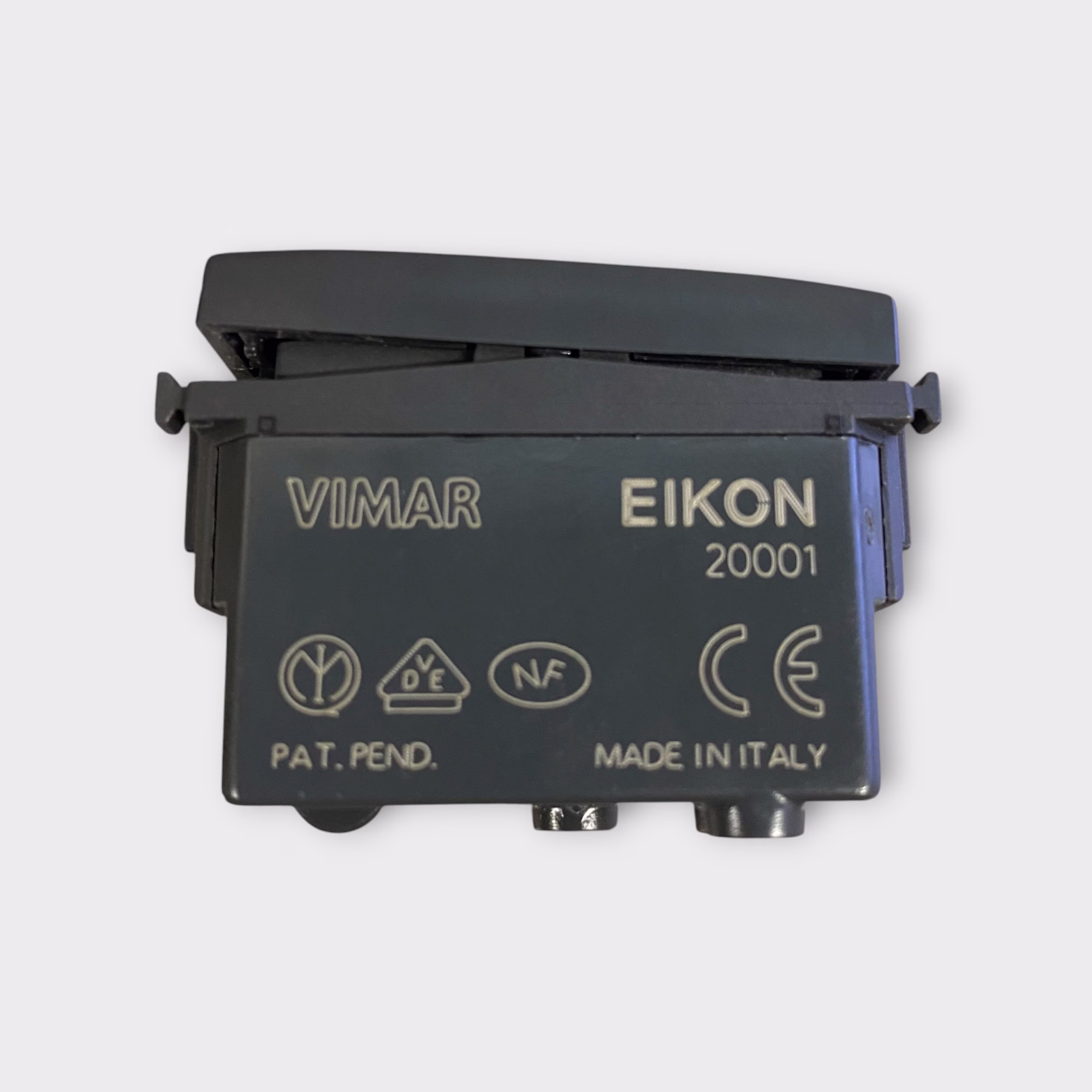 Additional Notes: This listing is for a Vimar 20001 EIKON 1-Way Rocker Off Switch 16AX/250V (Grey). The item has been lightly used but remains in great condition.